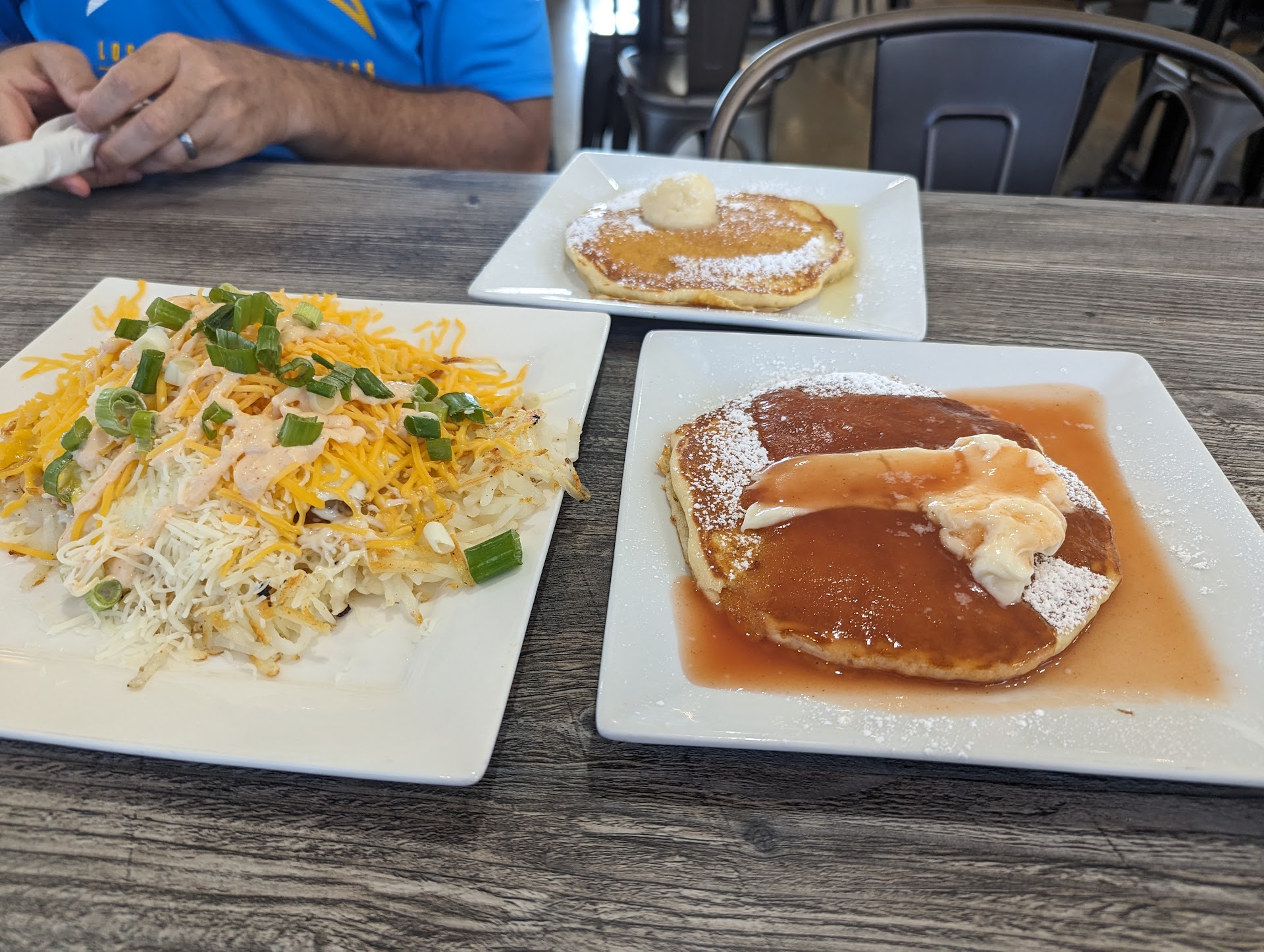 Then came the loaded hash browns. Or should I say, âloaded-and-then-someâ hash browns. This plate was an architectural marvel of carbs, cheese, and bacon, all held together by some mystical sauce. I wasnât sure whether to eat it or file a construction permit for it. Spoiler alert: I ate it. I may or may not have had an existential crisis halfway through, but I powered through like the champ (or glutton) I am.