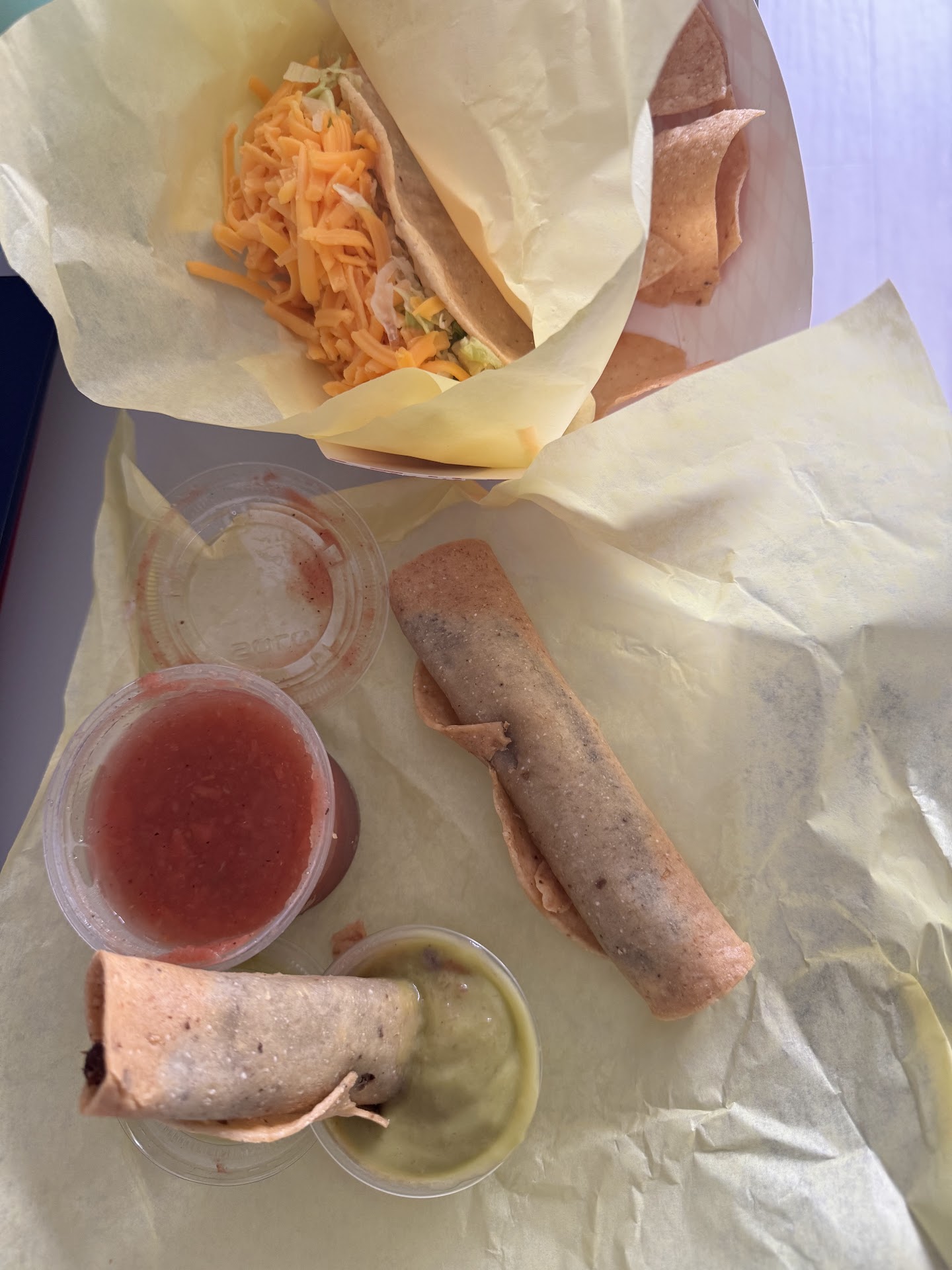 I usually get some of the liquid guac and salsa and combine it with the burritos for a little extra flavor, but they are good without too. The chips are decent, the burritos are definitely messy, the ordering experience is way easier than Tito's, but the burritos (to me and my wife) are awesome. Looking forward to going back for some nostalgic flavor from the Culver...