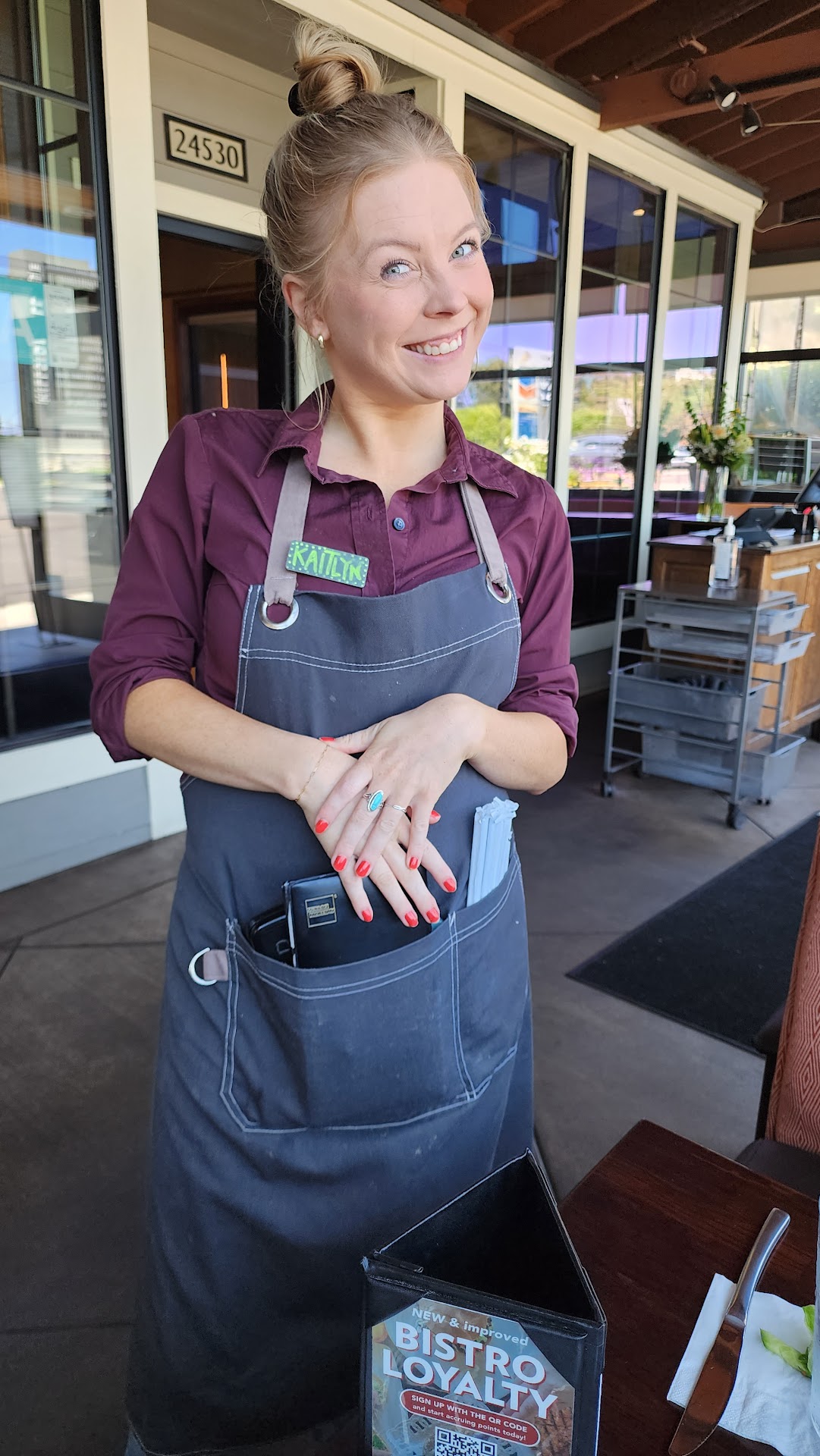 Kaitlyn, our server was the Best! She was patient and allowed my friend and I to take our time to decide on the many options on the menu. Kaitlyn was very attentive with a smile!