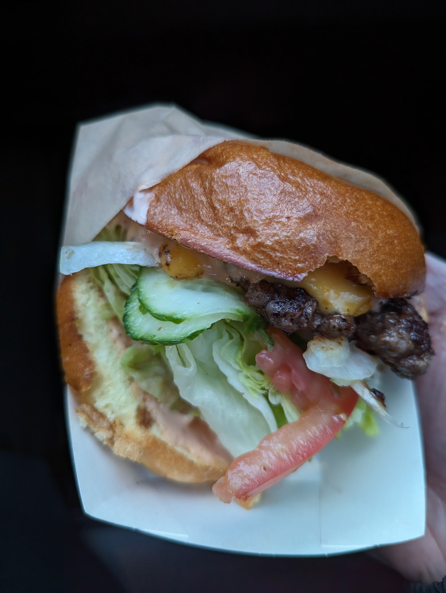First thought: it was one of the best burgers I have eaten from a burger shop in the last years, however I think it has some room for improvement. (4.3 stars I would say) Details: I ordered a cheeseburger for 11.25 USD. The price is normal. If you take fries and drinks extra its plus 4 USD, which makes it good value. The burger was made relatively fast. The Burger tasted really well rounded. The bun was nice and fluffy. The beef was tasty and fatty with some crust. Lettuce, tomato, pickles and onions seemed fresh. In my opinion there was a bit too much lettuce. If you remove some lettuce you probably also don't run into the problem of the burger not properly build together (see picture). The sauce fit well, especially with the lettuce. It reminded me a bit of a salat dressing. The sauce was a bit runny, hence eating it was a bit of a mess. On the other side when the beef was out at one bite, it recovered the flavour really good for the rest of the burger. Also there could have been some more onions on it (maybe also add a caramelized onions option :)). A touch for me was missing however, maybe use an other kind of seasoned pickles, which have more flavour. Gotta try. Funny thing is I make my burgers at home very similar and you don't often find them like here in this style without doing any mistakes. This is the reason it is good. In my opinion this style and burger in general should be standard. You feel like these people here ate a lot of burgers themselves and came to this whereas other burger shops didn't even try to eat different styles and make something good. Because they often already fail with the basics.. My thought after eating: it was like a poem. Exactly like when I eat my burgers. However I think doing some tweaks as mentioned above wouldn't hurt.