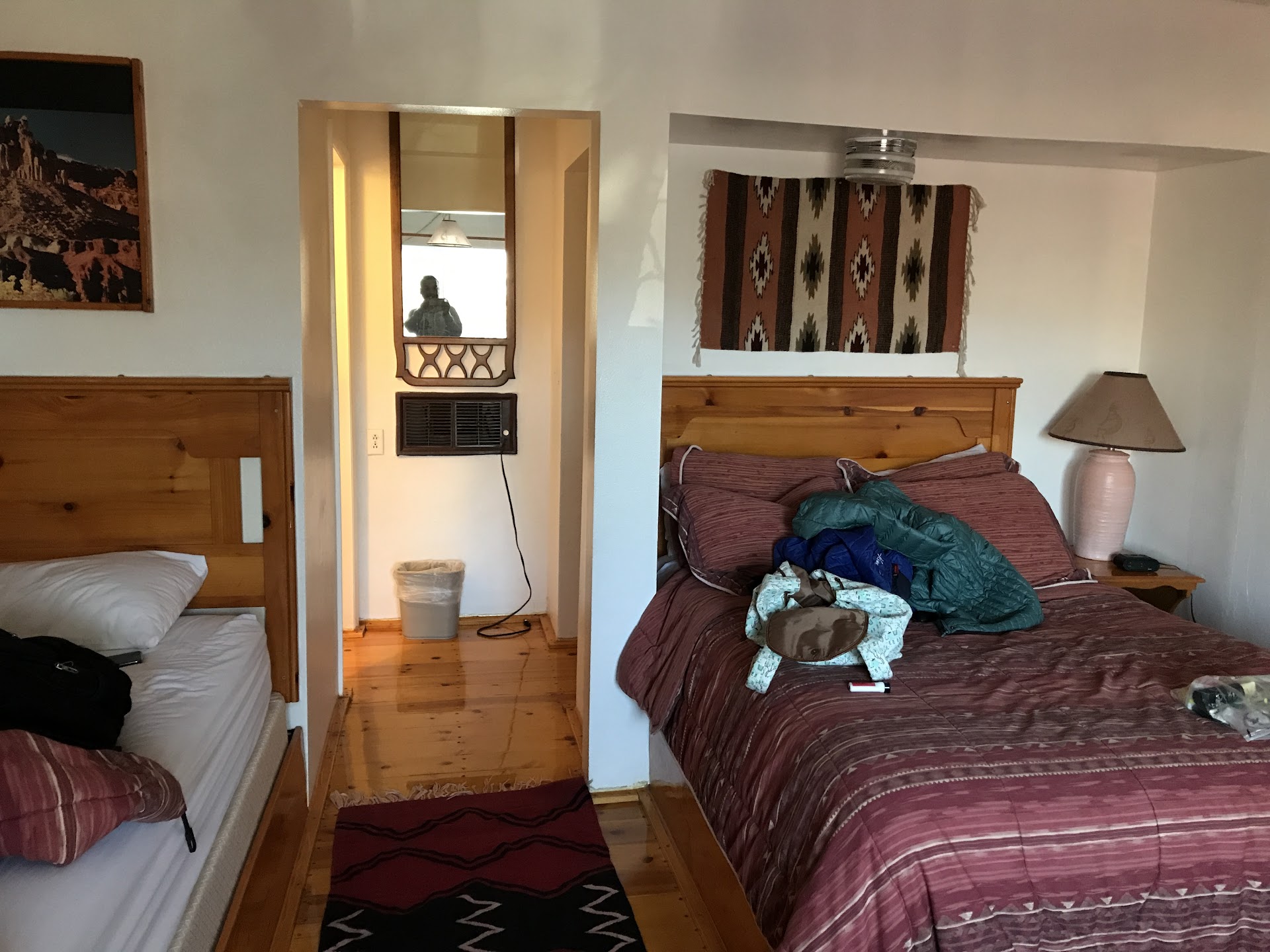 Read moreThis review is for the motel room. It was clean and nice and cool when we arrived but the swamp cooler was all or nothing like one setting . The bathroom was small and could be updated. The window in the bathroom was broken like cracked. For the price they charge per night for the room they could afford to do updating. House keeping needed to wash not just the sheets but All of the bedding to include the comforters and pillow shams. The comforters just felt like they were dirty and soiled. The room should have been bug bombed. I killed three spiders and one huge thing that looked like a baby scorpion. Inside the shower curtain folds there was a gigantic dead fly. On a positive note the pillows were soft and comfortable. We stayed at the place on a last minute change of plan. Not our first choice but it was pet friendly so...