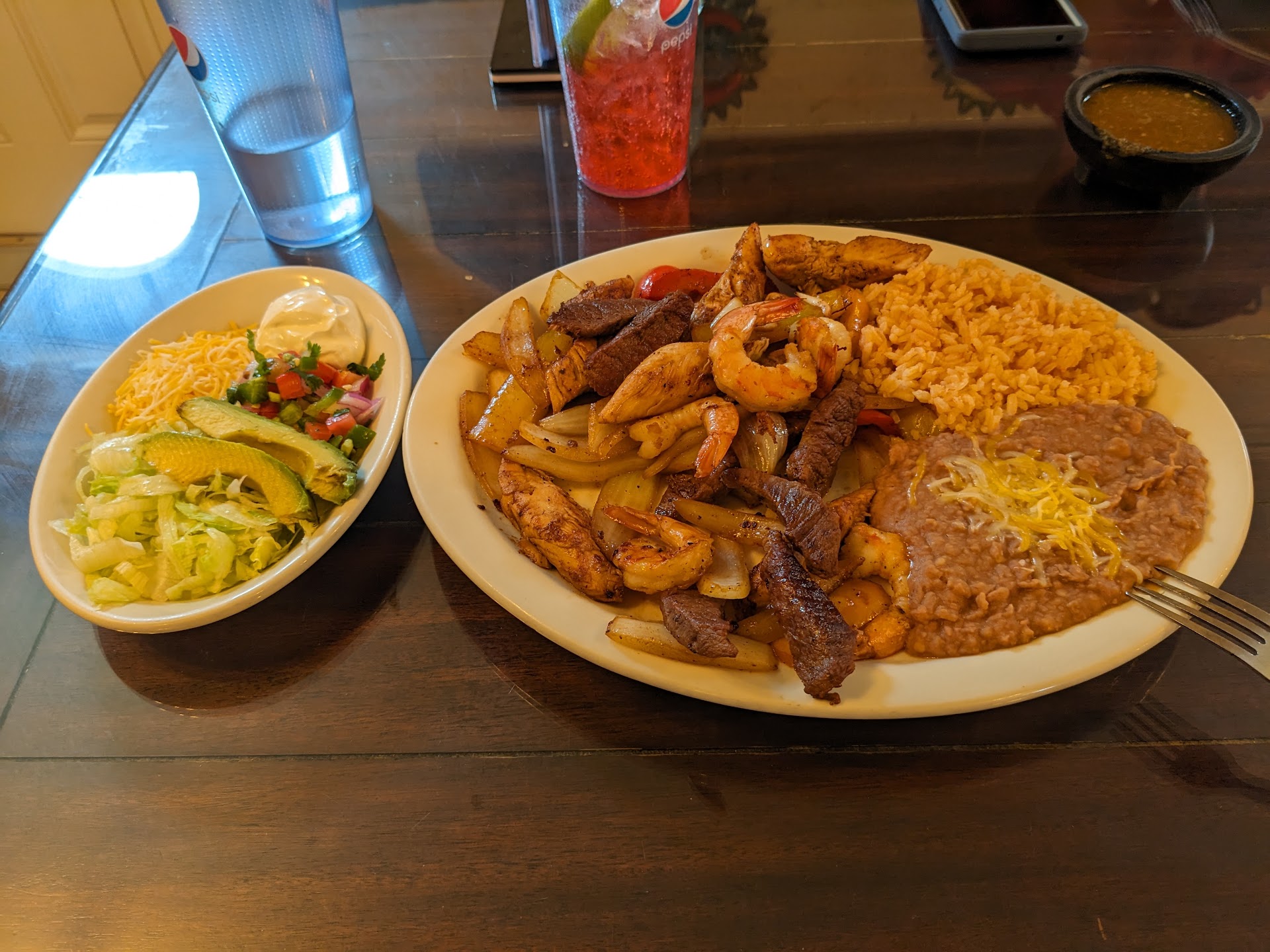 Read moreThese 2 stars go 100% to the staff... The food gets 0 stars. The staff were wonderful! They were friendly, checked in on me, etc. The food however? Flavorless except the salsa which is too freaking spicy to eat, even though you pay extra for chips and salsa. I ordered basic...cheese enchiladas, chips and salsa, and sopapillas. The cheese enchiladas had no enchilada sauce/flavor at all. They were greasy tortillas wrapped around melted cheese. The rice was flavorless as well. The beans tasted like Rosarita canned beans. The chips for the salsa.wer barely cooked making them super tough and chewy. As for the sopapillas? I'm not sure how you make fried bread dough flavorless but they succeeded! Even the cinnamon sugar couldn't add enough flavor to make them decent. I was amazed at how many cars are in the parking lot for such bland "Mexican" food. I have to say to the server though: you were wonderful and the ONLY reason this place is even...