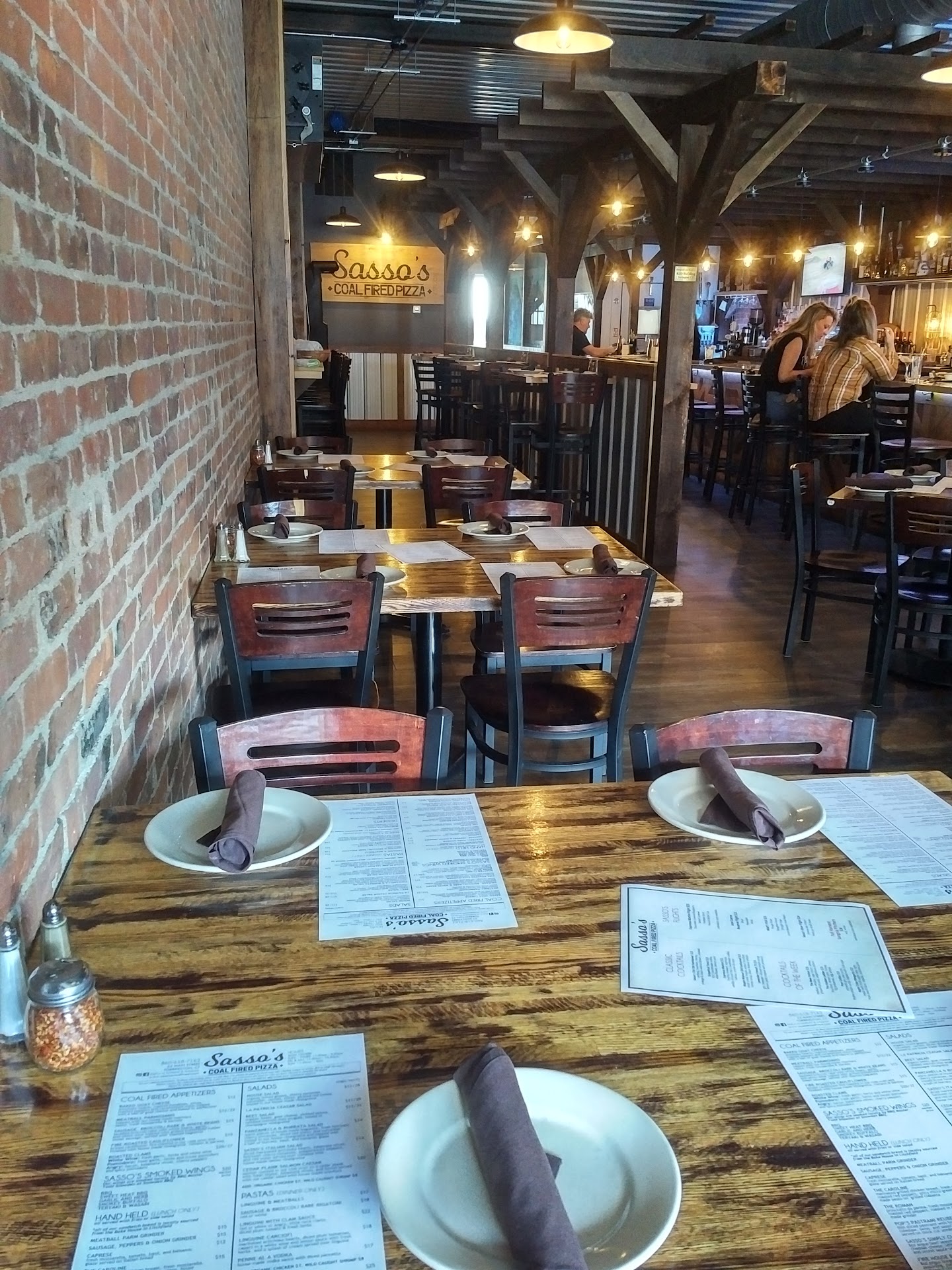 Sasso's has always had a cool interior with high ceilings, wood, metal, exposed brick and a combined rustic but modern feel. The bar space is an extension of this with plenty of tables, a long bar and the same modern soundtrack playing over the speakers. Our service was quick, the pizza was hot and savory and the drinks were well-made in petite glasses. We boxed up what we couldn't finish to enjoy the next day and were only five minutes late! We will find time to enjoy this spot more frequently, it's such a delight. Give it a try if you haven't yet.