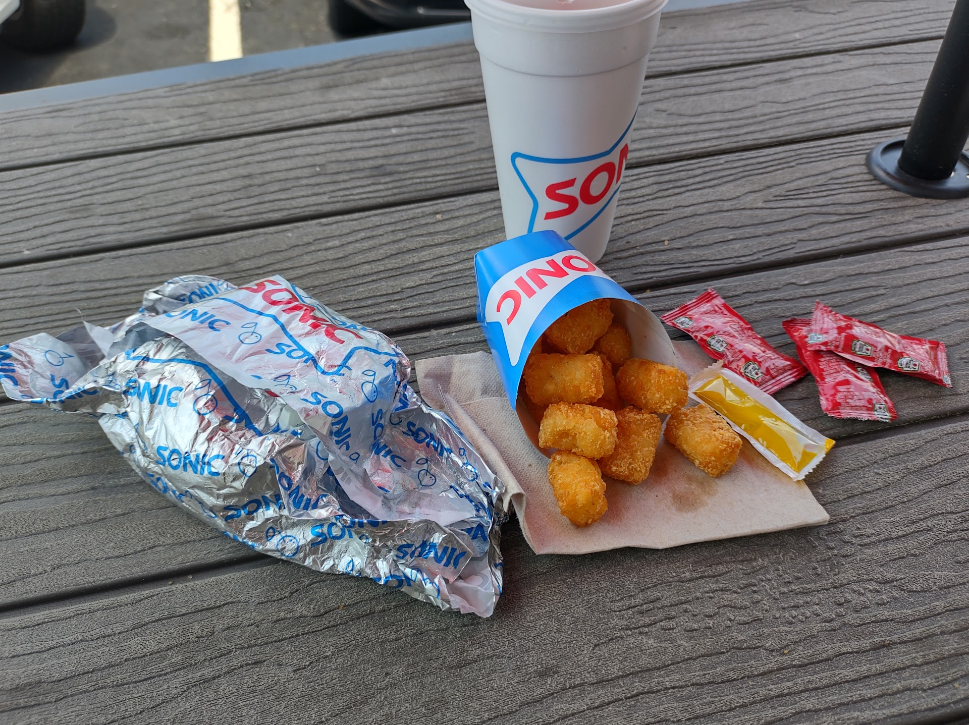 I tried the Sonic Cheeseburger, Chili Cheese Coney, and a side of their famous Tots. The cheeseburger was juicy, with fresh vegetables and a nicely toasted bun. The Chili Cheese Coney was a satisfying indulgence, with a rich, flavorful chili smothered over a perfectly cooked hot dog. The Tots were crispy on the outside and tender on the inside, making for a delightful side dish.