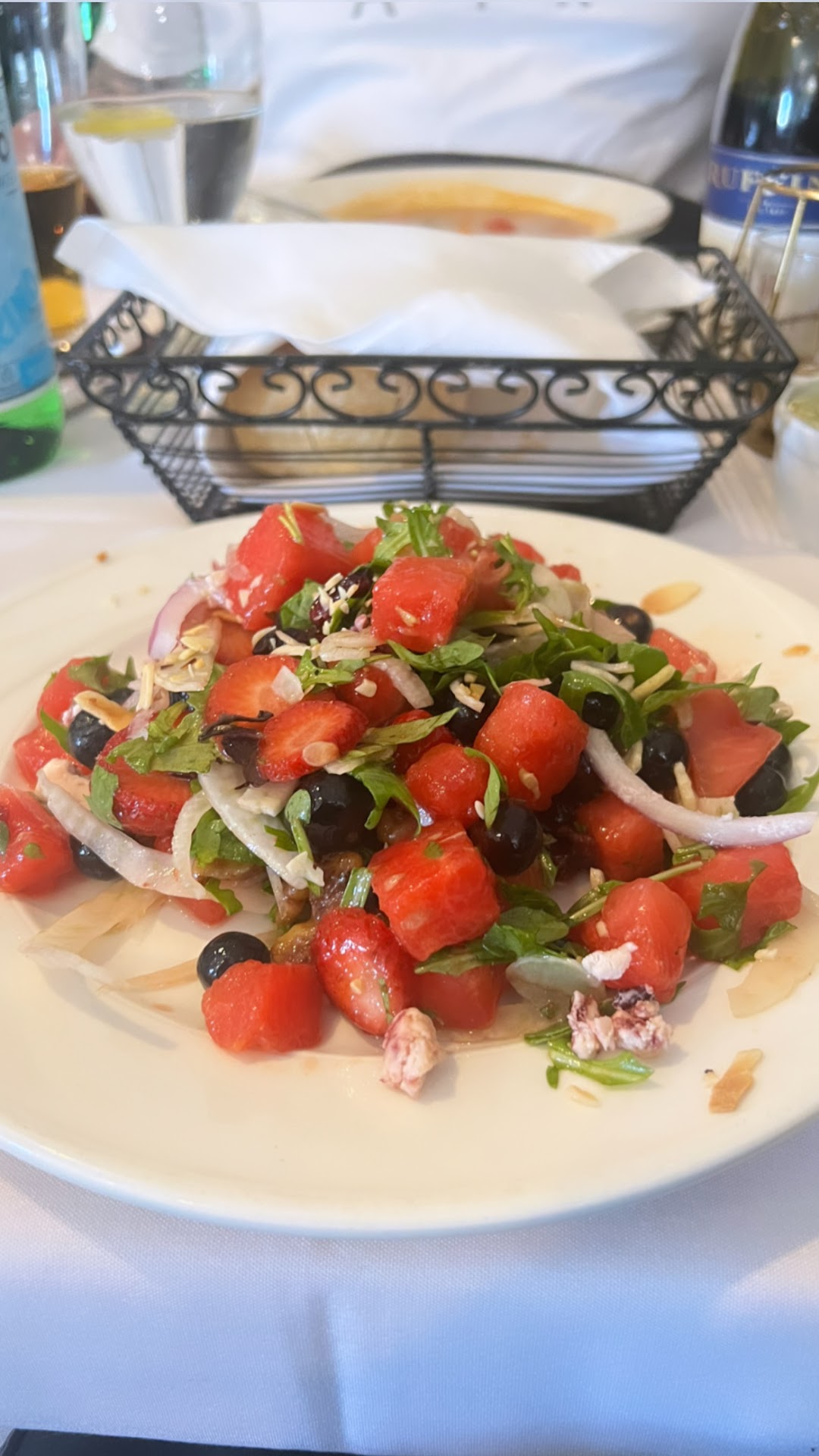 The Specials menu got a workout from us; I believe both apps we ordered came from there - the burrata and this watermelon/strawberry salad - and they were both great. The burrata was served on a grilled slice of pineapple, which was a solid mix of flavors. And I'm not a huge salad person but this was the best one I've probably ever had. I definitely prefer the sweeter ones, and this had a goat cheese topping with a purple glaze or something on it that was just magnificent (apologies if I'm butchering the description). I had to be mildly coerced into the salad to begin, but I retracted my reservations on that quickly and would get it again if presented. Good luck finding another review or situation where I talk that highly of salads. It's not happening.