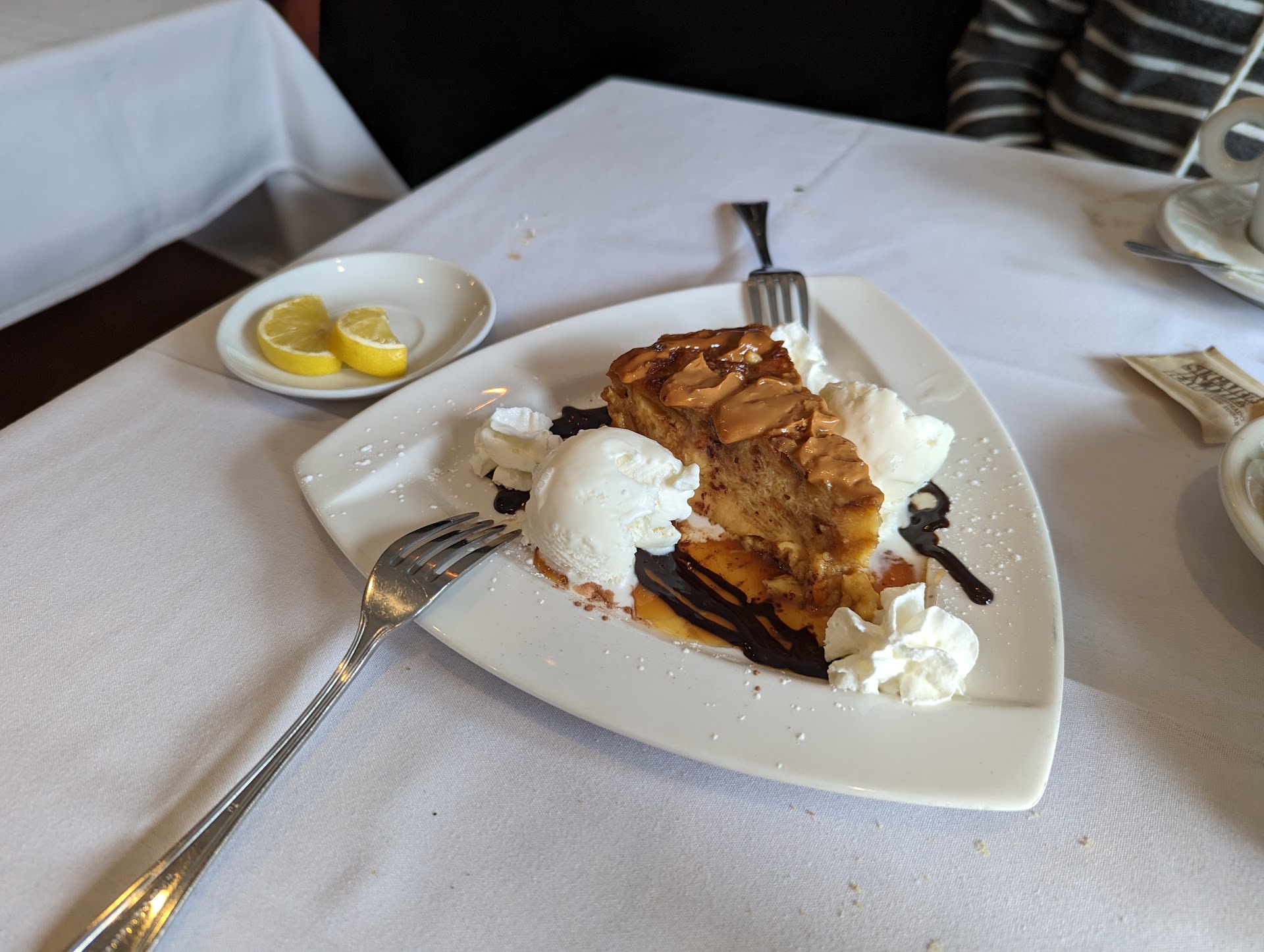 That should have been the end of this adventure, but of course a giant brownie sundae showed up as well. I think we ended up leaving a bite or two on the table but that's only because max stomach capacity had been reached. The brownie was very, very moist, to the point where I likened it to a lava cake.