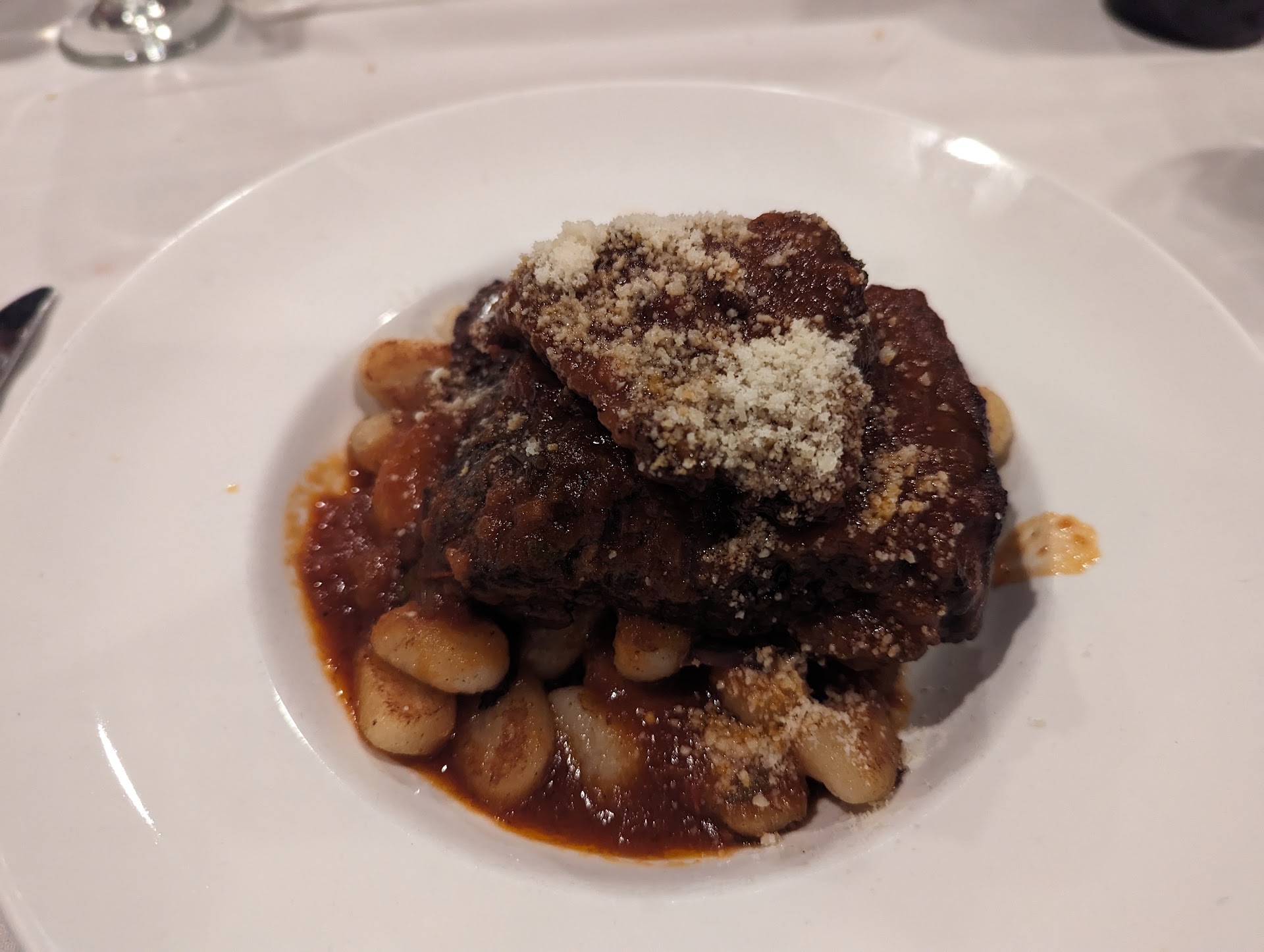 We didn't make reservations but were able to secure a table in the first room by the entrance easily (we were told the second room off to the side was reserved). I was all about the service. Everyone we interacted with was well-trained, friendly and hospitable. My chum literally went to the school of hospitality and can put restaurants through the wringer, but everyone was up to the challenge, including a young woman making her debut that night announcing the specials and desserts. She had probably 10 items or so to relay (all with a solid variety of ingredients) and handled the assignment with aplomb.