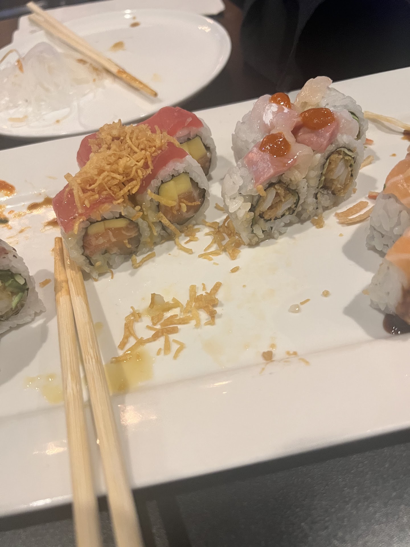 Read moreWent here last night for an informal little networking type gathering. I liked the ambiance and decor. I have to say, simply because it struck me as being to a rare degree, that the waitress we ended up with was simply gorgeous. I should add, of course, that Ally is a fantastic waitress - engaging, friendly, and attentive without hovering. The quality of service in general here was very good, and though they do so unintrusively, you can tell that they work sharply as a team keeping an eye on all the tables, clearing plates and glasses very promptly, and asking if you need more of anything without disrupting conversations. The sushi we had was very good and nicely presented, and they have a very solid selection/variety at the bar. Whether you want beer, bourbon, scotch, tequila, (I spotted sake but didn't recognize it), they have good options for you. An evening of sushi and drinks is not going to run cheap pretty much anywhere, but the quality of service, food and drinks here is excellent. Some may like the music, some may not, but I will say this: live DJ and yet you could sit there and have a conversation with minimal effort to hear and be heard. It almost... and this may very well be deliberate and consistent with the name, but it struck me as an interesting blend of classy sushi meets dive bar lounge with sort of club music? That might sound odd, but they make it work. If you're looking for a traditional sushi joint, this ain't it. But if you like Asian fusion, feel like some sushi and drinks, this is a nice spot. I recommend it,...