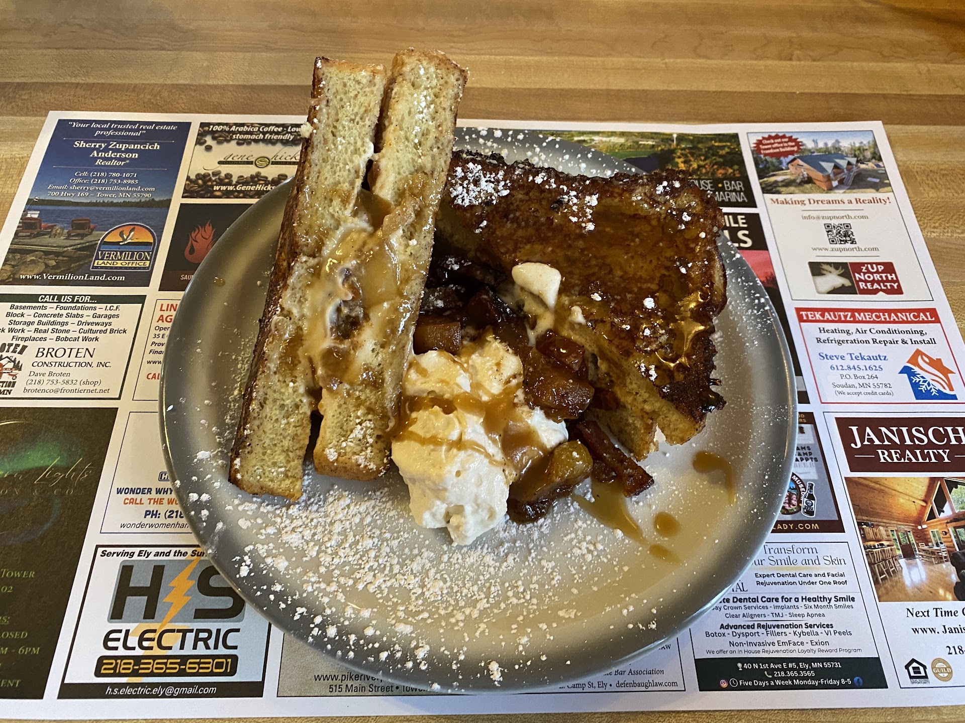 Ā Ā Ā Read moreCame in for breakfast and had an amazing experience. Service was as friendly and attentive as can be, and we were offered the newest Timberjay edition to read while we waited for our order. I am not a sweets person, but wow was the French toast special- stuffed with cream cheese, bacon and baked apples- with a salted caramel drizzle- so tasty! My husband had the Sasquatch Breakfast Burrito and loved it. Despite being stuffed, we had to try the raspberry bread pudding which more or less meant we were done eating for the rest of the day! Canāt wait to go back and try the biscuits and gravy and the cinnamon roll. Tower...