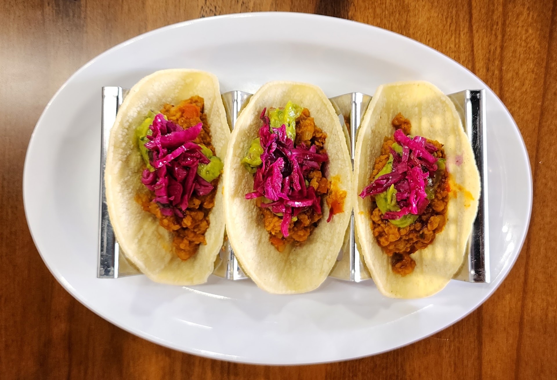 ย ย ย Read moreDuring my visit, I experience good customer service; employees are helpful and kind (though I think clearer boundaries for where the line begins are necessary because there are multiple cash registers though when I stand in front of an open cash register ready to order twice, two different employees [that just come to the front] look to help people that come after me farthest away from the refrigerator [nearer the desserts] which seems to mean employees may understand that a/ potential customer[s] lines up differently than one that already receives help). I'm glad about finding an all-Vegan eatery. The taco ingredients are tasty and stay in the taco wrappings well: I have a very clean plate afterward (maybe I'm just not a messy eater ๐). The Strawberry Cheesecake slice is very different tasting with every bite (ranging from a tasty bitter, to sour, to fruity-sweet, to caramely-chocolatey-graham crackery-sweet) like more of one ingredient is in one area than another, every time: all I do is eat the slice of cake slowly, bit by bit, not in chunks, savoring each flavor with my tongue all around the inside of my mouth, every crevice. The establishment accepts different forms of payment. It's a chill (not just talking about the AC/Central Air effectively working either) spot to get a bit of work...