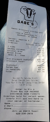 Myself and a co-worker came in yesterday for lunch during Oshkosh's Restaurant Week - this was my first time at Gabe's. Immediately I loved the overall feel and design of the place, they have done an amazing job with the interior of the building. The remainder of my experience at Gabe's went downhill from there, and forced myself and my co-worker to walk out of your establishment.
