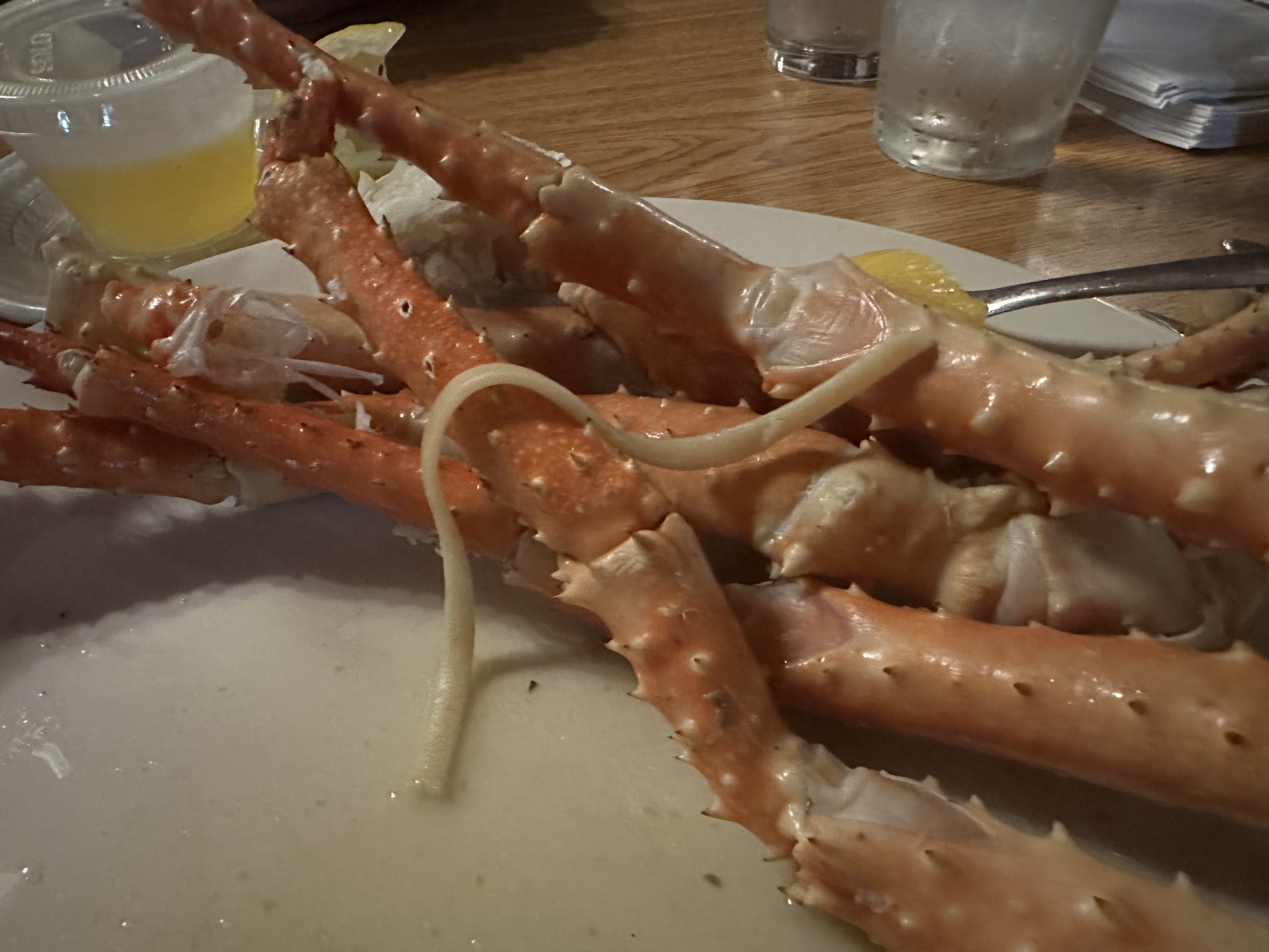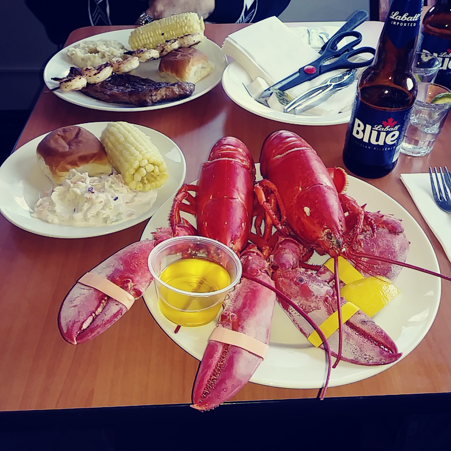 I had the lobster special, 2 fresh Maine lobsters, half ear of corn on the cob and coleslaw. Lobster was fantastic, prepared to perfection and they were good sized. The corn was tender and tasty and the coleslaw was VERY good! I also had the lobster bits wrapped in bacon on a skewer. They were phenomenal!! The photo shows one skewer, there were two with 3 bits on each. They were an entree and came with some really good onion rings.