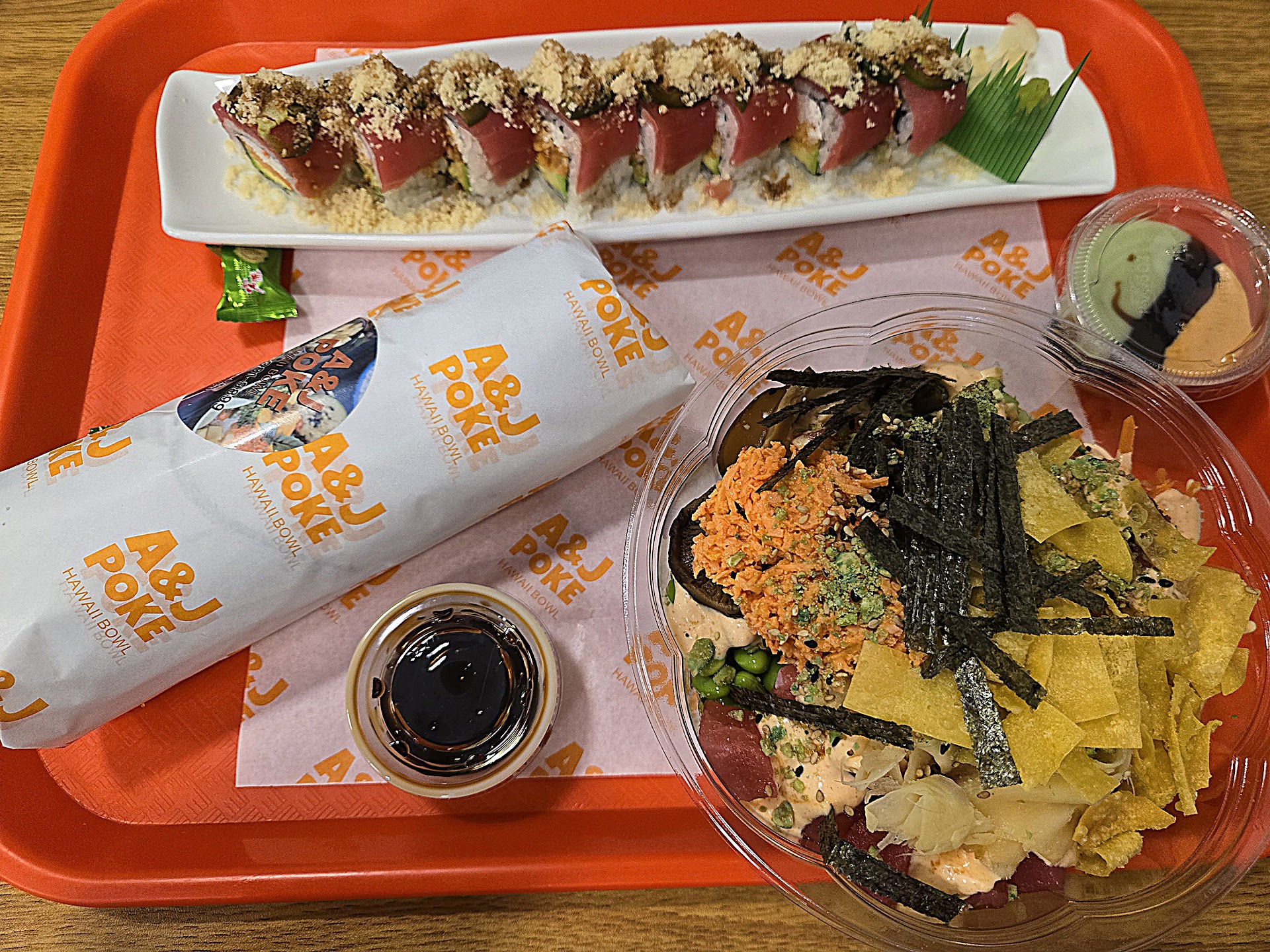 Read moreNew place that just opened upn and going to be a new favorite of mine. As a poke restaurant the protein selection is all fish based and super fresh tasting. The burrito(dynamite trio) was nice sized and perfectly packed. I also got a Hawaiian roll which at first i was confused on the textue until I realized there was pineapple chunks (first time having pineapple on sushi and i reccomend this roll) I used grubhub to order since i had a gift card to use (much cheaper to order direct) food was estimated to be done in 25 minutes and it was right on time. When i pulled into the lot it was being bagged. Staff was super friendly and welcoming. I will make sure to return and get pictures of my...