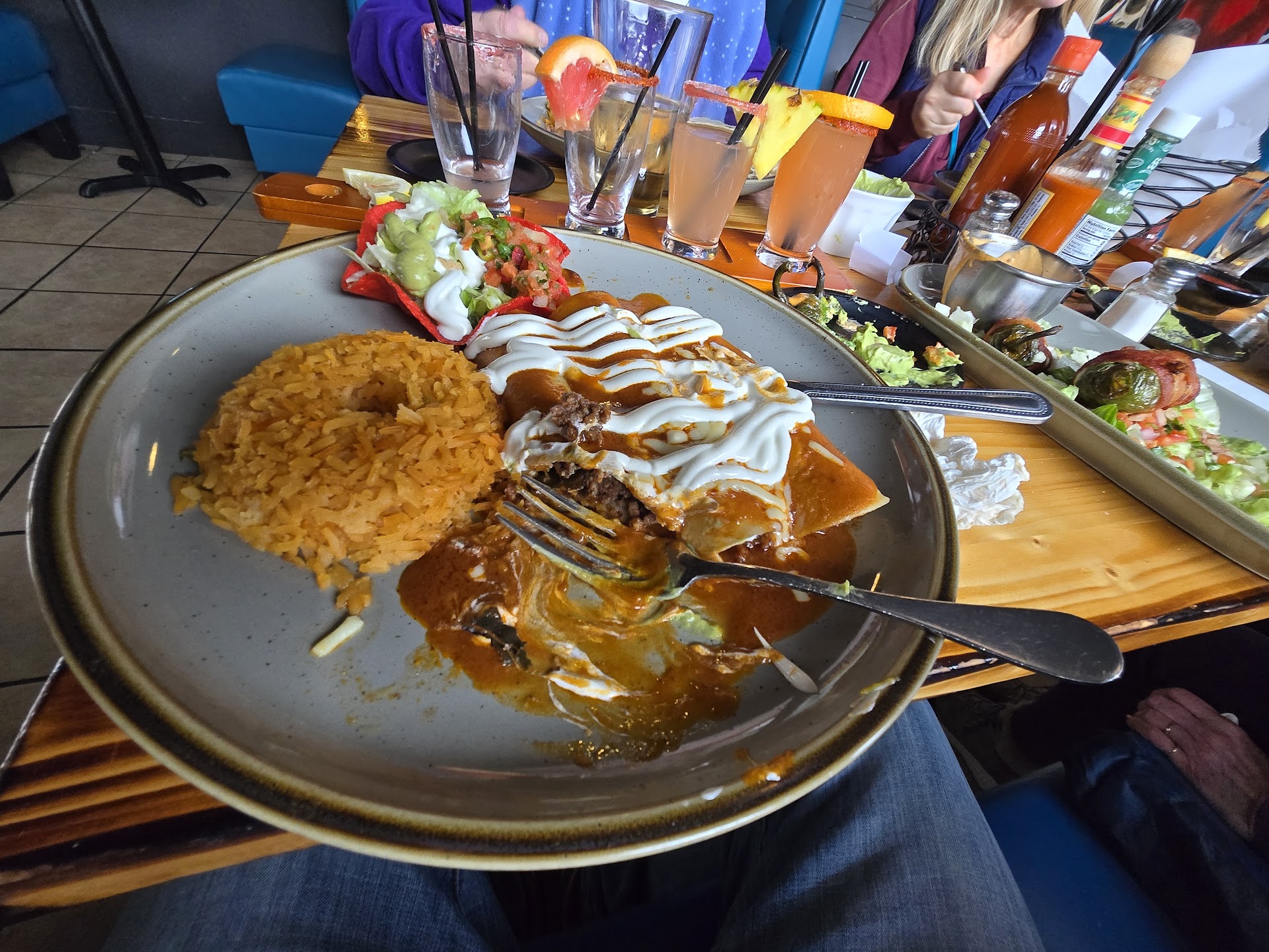 This was bad. Really bad, like health department bad. Service was non-existant even though we were the only table at 250pm on a Sunday. The odd silence should have been our cue to leave. We tried to order off the lunch menu which went until 3pm. By the time our order was taken it was 302 and told we had to order something else - no big deal, we had to order off the dinner menu. 2 flights of Margaritas arrived with no ice in them. It was as if the were premade at the bar, placed in the cooler and poured as needed. They didnt taste fresh by any means . The guac dip was by far more sour cream than avacados. Ick. My enchalidas arrived by the server, carrying them with an oven mit. I took a bite. It was less than room temperature. I sent it back -and im someone who never sends anything back. It came back a little warmer but tasted relly really stale. Possibly prefrozen meals and aged in a improperly kept cooler? I didnt eat it. Im not fond of food poisining. My guest ordered her food with NO ONIONS. It came out with onions. I sent it back. When it came back, it was smeared around the plate as if someone tried to use their hands to pick out the onions and sent it back to us. There were still onions in the dish. We had to flag down our server for any service. They seemed more interested in getting their door dash orders out than dealing with customers. 4 people - dinners, guac, 3 alcohol drinks, 1 soda was $178 plus a low 10%tip which im not sure why i left it. Double...
