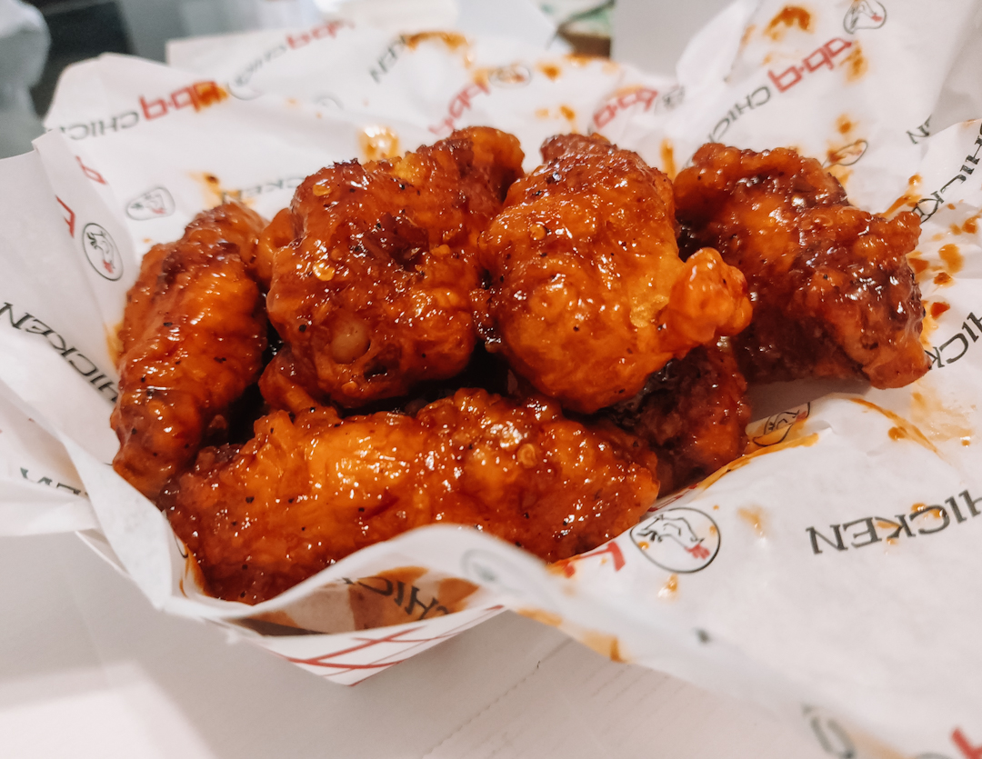 The chicken itself is so moist and delicious, with a nice, crispy outside- this place knows how to make some great chicken! There’s a lot of flavors to choose from, and you can order a variety of kinds of chicken (a classic cut-up chicken with the thigh, breast, leg, etc, or regular wings, or boneless wings). I opted for boneless honey garlic wings, but my dining mates were more adventurous and ordered a lot more. The bibimbap was on point, and the items that were listed as spicy did deliver. Nothing was overpowering or unmanageable, it was all pleasantly spicy flavors.
