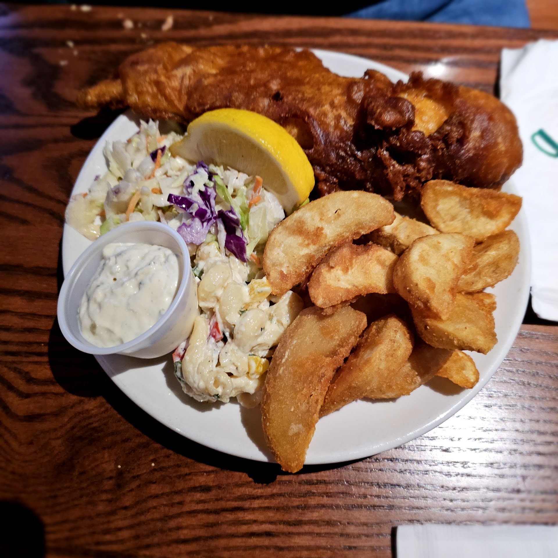 Read moreFirst let me say, I used to be a server and bartender, so I have patience when it comes to service. Unless they are really bad. That was my experience here. Went here with my family and upon walking in the hostesses were talking to each other and didn't even acknowledge us for a couple of minutes. We were given a table that was tucked in a corner. It was not a great place for a table. We then waited 15 minutes for our server to great us. We placed our drink orders and I said I was looking over the menu. She brought us our waters 5 minutes later and said so you want to hear the specials or just order. Well ok then. i ordered and asked what beer is popular here. She said their house made amber, the wheat, and bud light... I said I'd like the amber and she asked if I would like a sample to make sure I would like it. I said yes please. My wife's dish came with a starter salad. She got it and put her dressing on it. Not even taking a bite of her STARTER salad, the main course came. The other waitress that delivered the food said well sometimes these things happen and placed her food down. The food was ok. Son said his kids burger tasted funny, my fish was good, daughter had the Mac and cheese which was ok, wife food was cold because she was trying to eat her salad. The table was so small she had to actually hold her salad to eat it. But I never received my taste of the beer nor the one I had ordered. Our waitress was more concerned with the other tables than OK. Also, we were never told they have popcorn and peanuts in the back to munch on. Probably won't go here again, which sucks because I was really looking forward to...