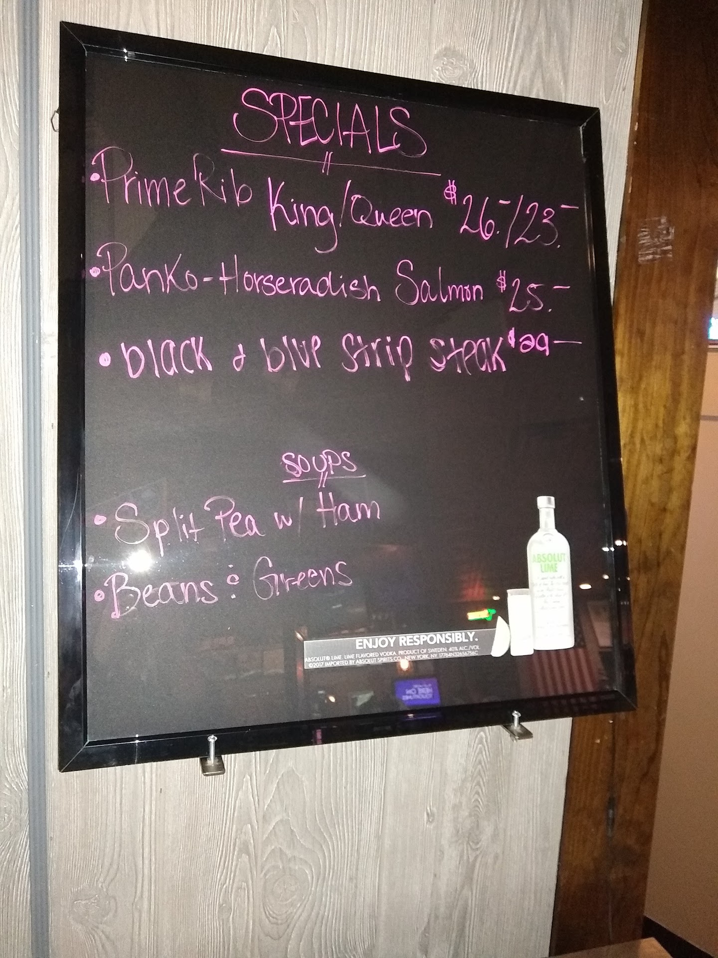The bartender last night certainly dampened our visit. Interestingly enough, I have been there before when she was working with two of my co-workers. Although I would not have described her as 'friendly' then, she certainly wasn't as 'ignorant' as she was yesterday. Mind you, the 3 of us has a drink each and I tipped her $20. My friend got to the bar before me. My friend told me that she ignored her at first. She finally had the opportunity to order her beer with a frosted glass. When she has poured the beer into the glass about 1/4 the beer actually froze in the glass. I, not a beer drinker, thought it was 'cool', apparently I was wrong, it changes the flavor. When I got there the bartender, who had maybe 7 other people with drinks at this point, saw me and walked into the kitchen. A few minutes later she came over and my friend showed her that the beer froze. Her reply was something along the lines of 'and ?'...'you want another one?'. She gave her a new beer and a glass and promptly walked away. Never asking if she could get me anything or even acknowledging me sitting there. When she finally came back to the center of the bar where we were I asked if I could get a drink. I ordered a Nutrl. She grabbed it, opened it, set the can on the bar and walked away. As she was walking I asked for a glass. About a 1/3 of the way through my drink I realized that there was some substance stuck to the inside of ny glass. I set the glass on the service ledge of the bar. It took some time before she acknowledged us again and as she was walking past us reached for the glass, asking in a very snotty tone if I wanted something else. I told her that there was something stuck inside the glass and her response was 'oh, that is just her cinnamon'..... Apparently, they have a seasonal drink that another patron had ordered and the glass was never appropriately cleaned. Zero apology and she never took the drink off the bill. It is sad as the location is convenient for co-worker to meet up at, but I will never recommend it again. While waiting for her to acknowledge us at one point a fellow patron asked her where her fiance went and she indicated he went home. I am guessing that part of her lack of attention to not only us but everyone at the bar may have had something to do with the fact that he was there but shane in...