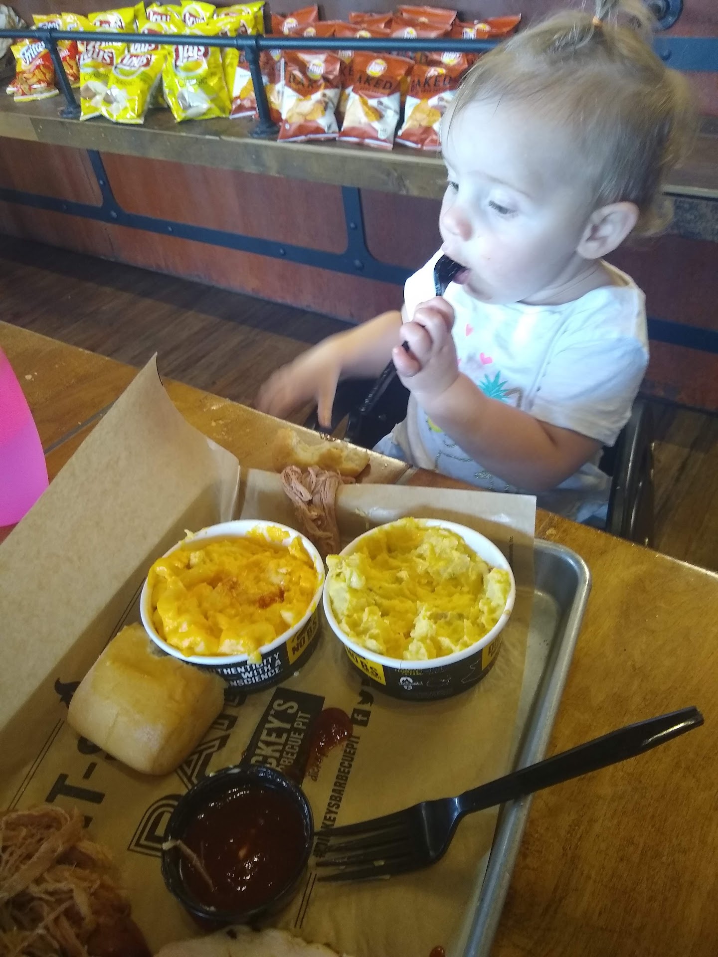 Read moreHonestly I was really interested in the idea of this place but it really just let me down. First off, the pickup/carryout menu states a lot of items that arent even present in the actual restaurant so I'm glad I decided to go in person because it certainly would have been a fun little surprise to hear half my order was missing. The interior is great, and the aroma is pleasant but the food certainly leaves much to be desired. I ordered a chicken and brisket plate to which both of them were cold, small -portioned, really dry, and didn't have much flavoring. The only thing that provided any sort of flavor was the sweet bbq sauce I chose and getting an extra small cup costs $1 (which honestly tastes like Kraft BBQ sauce, I could go to Dollar Tree and buy a whole bottle with that money). The mac and cheese was also okay... at least that and the potato casserole was warm. I practically spent $45 ($17 each platter + drink/tip) for subpar food. A man came to check up on us on how we were enjoying the food to which both my partner and I shyly smiled and said was fine. Overall, we ate it, but the price certainly wasn't worth what we were offered. I definitely wouldn't tell anyone I know to visit here for a good...
