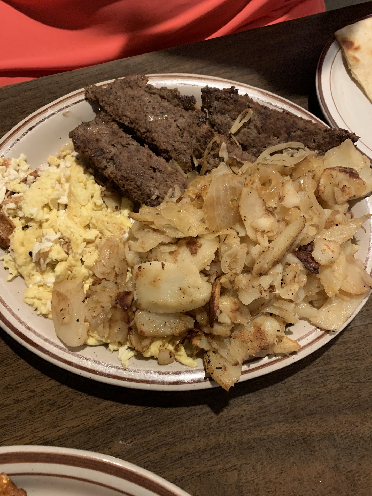 Although the servers are friendly and the place is spacious, I don't think the food is of great quality. Then again, I am vegetarian and there are not many veg options on the menu. They do offer a black bean burger but I've had better. (Anderson's on Sheridan has the best.) The burger was too spicy, as if the restaurant thinks vegetarian food has little taste. But my biggest gripe is about their home fries. They don't even resemble home fries (they're more like disks), and I feel they're too greasy. Not cooked enough. Not much of a choice of teas. Herbal would be a nice addition. The spanakopita is good, depending on who prepares it. Orange juice is fresh squeezed and probably the best thing on the menu. The pita bread is not authentic Greek pita bread. It's more like a cheap, store bought pita. Very disappointing. I can't comment on the majority of the dishes because I am veggie as previously stated. If you're looking for great quality Greek food and you're a vegetarian, my advice is to skip this place. My one star is for the great service and the fresh squeezed...