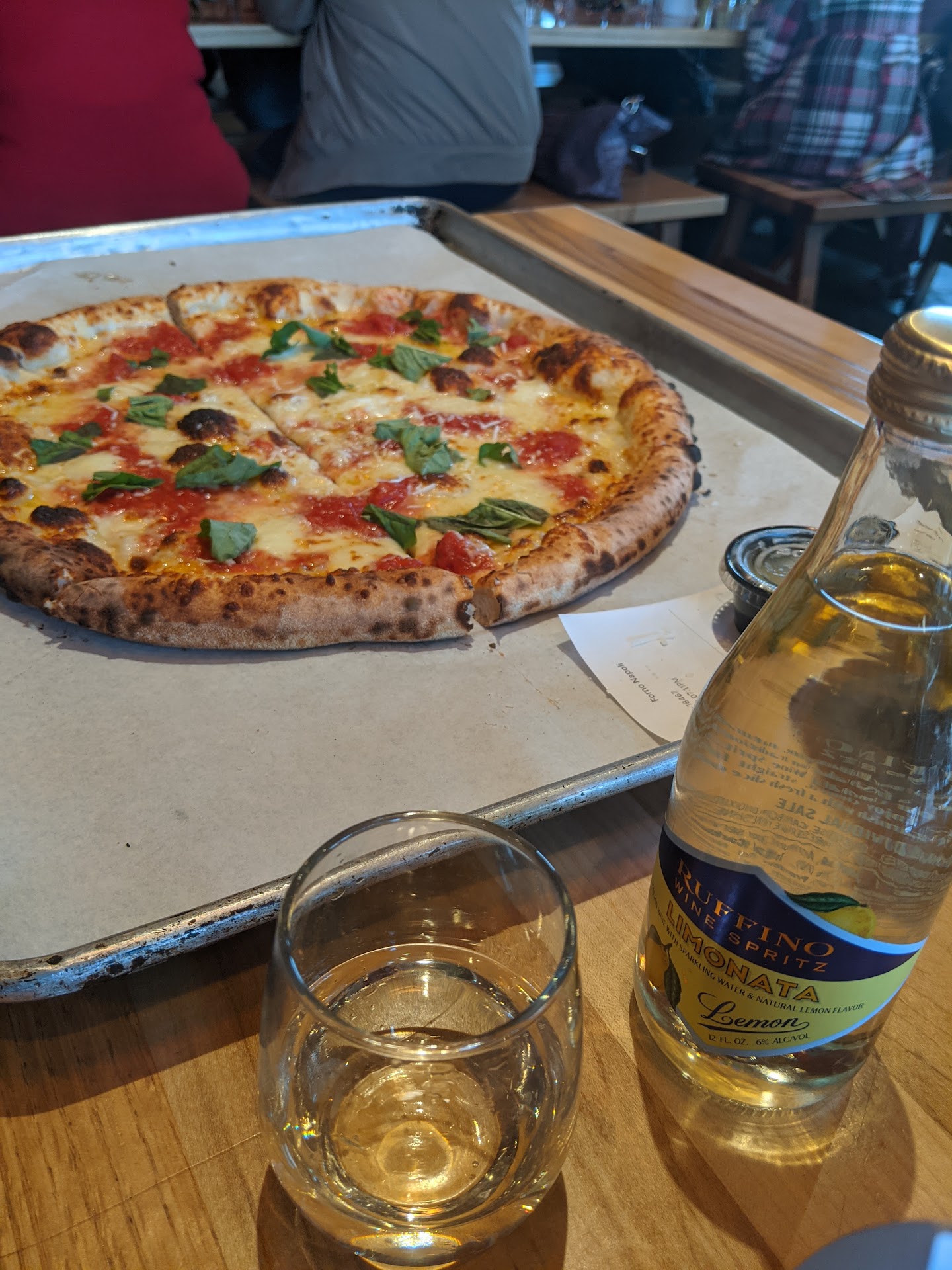 Read moreWe arrived, foolishly, at the height of the lunch rush, but we were greeted and made comfortable immediately. The open kitchen promotes an aromatic atmosphere. Of course, for me it makes menu choices, torturous; my brain tends to flail. We, me and the Mom Unit, finally made our choices. As a starter, I chose the Pollo Stracciatella, a robust chicken soup with fresh spinach, paper thin slices of Parmesan cheese, and egg. In this version, a perfectly poached egg floating in the center, unlike a more traditional whisked egg. Open the yolk and swirl in a rich flavor experience. My mom decided upon the Panzella Salad. Absolutely fresh greens, veggies, and grape tomatoes with wood oven toasted bread broken into crunchy bite size pieces and dressed with red wine vinaigrette. Perfect. Our entree was a difficult choice, but our taste buds prevailed. One Verdura pizza! The pizza was, as the restaurant’s name implies, an actual Neapolitan Oven pie. Paper thin crust with dark spots of brick oven love; crispy perfection. This pie brings together sautéed broccoli rabe, tiny earthy mushrooms, properly prepared eggplant, and cherry tomatoes atop an olive oil, garlic, and pecorino Romano substrate. No heavy tomato sauce. No thick cheese goo. Just honest Neapolitan pizza like I’ve eaten a hundred times in Naples. Fold it, dip it in garlic and oil, eat it, yum. We did save room for an absolutely wicked Napoleon. Airy flakey pastry layers filled with pastry cream and strawberries topped with whipped cream and more strawberries; finished with a drizzle of chocolate and a fine dusting of extra fine sugar. Be prepared, as it is large and very rich. It’s worth every bite! A side note. I love that the house wine is served in appropriate glassware. None of that long stem hoopla. The only thing more family style might be...