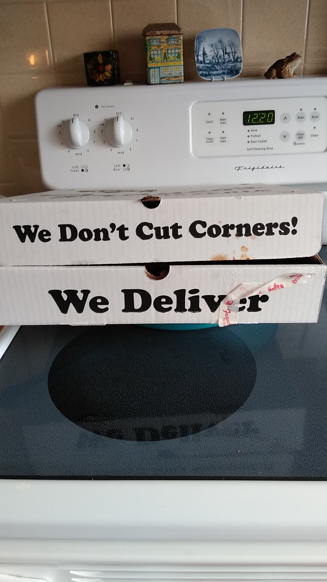 I decided to try this place. It took me 10 minutes to get there, a little bit longer than I would usually want to drive to pick up a pizza because it wouldn't be as hot once I got it home, so I planned on eating a few slices in the parking lot before I left. There were a lot of cars in the parking lot, and there was a bit of a line, a few people waiting outside, but it was a Saturday night. I ordered double cheese. Their caption on the box is "We don't cut corners." However, they missed two corners on my pizza. When I got home, discovered that there was no cheese on three of the pieces on the right, as you can see in the picture. This picture was taken the day after. It definitely did not seem like double cheese, and I couldn't understand why there was no cheese on three whole pieces. Pretty disappointing when you not only would like cheese( of course), but double. It seems like maybe it was set down crooked when it was hot, and maybe the cheese ran off of it and puddled on the rest of the pizza. It didn't seem like it because like I said, not a ton of cheese. Also, a little bit too much sauce for my taste. I was going to call and complain, but what is the use. I might try them again, but this time I would open up the box before I left. I keep forgetting to do that every time I get a pizza. Sometimes I get home to find the bottom of the pizza is burned, things like that. However, for them to make a new one or just put on some new cheese for me who knows, might have taken them forever. Aside from that, the flavor was good, but the cheese was a little bit chewy, kind of like the top was just a tad overcooked, and yet the crust was doughy, more like a roll than...