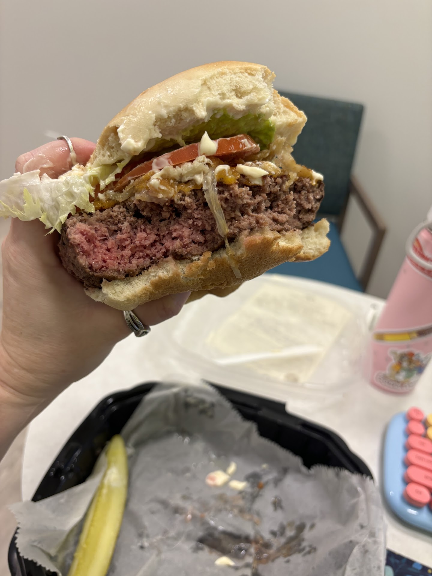 My family of 4 got 4 HUGE burgers and they were all cooked perfectly, had great flavor, and each had their own customization. Mine ( pic attached) was the blue burger with jalapeños as it was excellent. We also got a single order of wings ( medium) that were excellent. I heard the garlic Parmesan are also good but wanted to try the standard buffalo wing as we are always looking to test the wings at all locations. Next time the garlic ones will be on the order.
