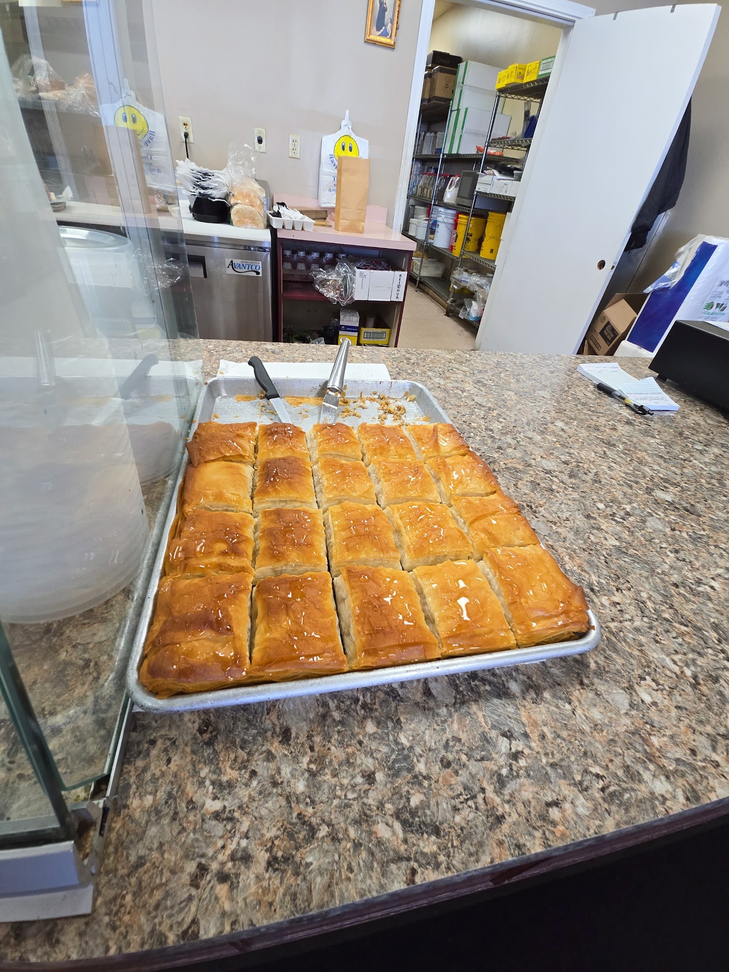 Read moreI'm from out of state and I'm so happy I found this hidden gem. Owner is very friendly and the establishment is clean. Self serve water, with bottled beverage options. Primarily mediterranean food options, but there is menu items for food such as chicken fingers, cheeseburgers, soups. I had the chicken souvlaki pocket. I ate it with the dill dressing. Absolutely delicious! It was refreshing and savory at the same time. Very well balanced and lifted my energy for the rest of the afternoon. I also got the fresh made baklava... best baklava I have ever eaten. Not too sweet, the pastry texture was crunch and chewy. I haven't had a baklava as good as this. I will be coming back here again before I leave. The atmosphere inside is very cozy, and the noise levels are quiet. Average level of busy, but not any problems finding a seat. It's a place where you order at the counter, find your own place to sit, and they'll bring your food to you. Place trays in designated spot, same as trash. Very...