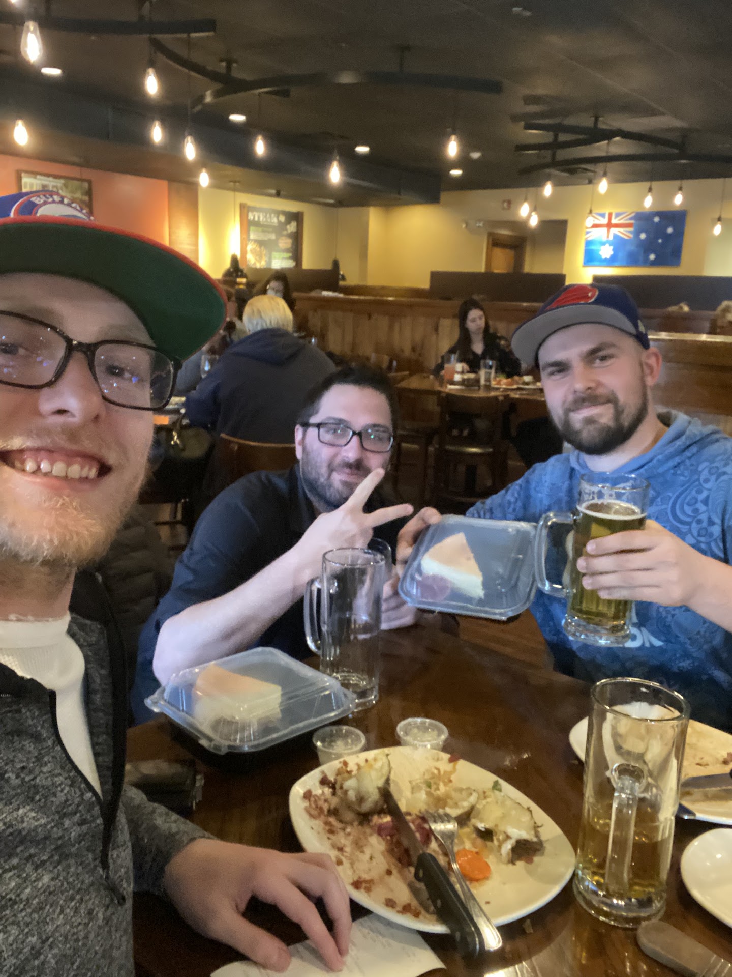 Read moreWe went during a Bills 1 o'clock game (I didn't pick the date) for a birthday meal. It wasn't busy and we were seated right away (got a seat facing a TV). Our server was really nice and attentive. We got drinks and appetizers ordered and things came out pretty quickly. The blooming onion was real good but way smaller than I'd hoped since we wanted to share. We also got the Kookabura wings, which were dry rubbed and were actually really good. Everyone pretty much got some kind of steak all around. I got sirloin and chicken combo. Everything came out at once...except my sirloin which was a few minutes behind. I think they totally forgot it because my chicken and sides came out plated together first and the steak came a few minutes later on its own little plate. Honestly, I expected better. The star of my entree was actually the chicken...which is pretty disappointing for a steak joint. The fries and broccoli were the same you'd get anywhere, even though it was good there wasn't anything special about the chicken. The steak though was a thin cut of sirloin and totally unevenly cooked. Was supposed to be medium well and the edges looked like they were there. Must have rushed it because you could tell they didn't leave both sides on for the same time. Wasn't bloody but definitely definitely not medium well. While it wasn't God awful everyone felt their steaks were quite fatty. Overall, it was a disappoint meal considered it cost $40 to $50 a person by the time you add in apps and drinks. I have had way better steaks and meals...
