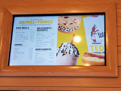 All this would have been tolerable except the quality of the hotdogs has dropped significantly. The bun on my foot long dog was clearly several days old and the toppings were sparse. The hotdog itself was warm (not hot) and showed no signs of the famous charcoal grilling Tedās is supposed to be famous for. I ordered onions, zesty mustard, bacon bits and jalapeƱoās on the hot dogs. The bacon bits were dried out and hard. There was barely any mustard on the hot dogs and the pickle was simply not there. I would have gone back to complain (or at least get missing condiments), but the line was interminably long. My wifeās order of a regular hot dogs with chili and cheese was also disappointing. Chili clearly out of a can and a hot dog that was lukewarm. About the only food bright spot was the onion rings. Fresh, hot and crisp. Thought about ordering another order, but I didnāt have the spare hour it would take! The onion rings are the reason for the extra star or this would have been a one star review.