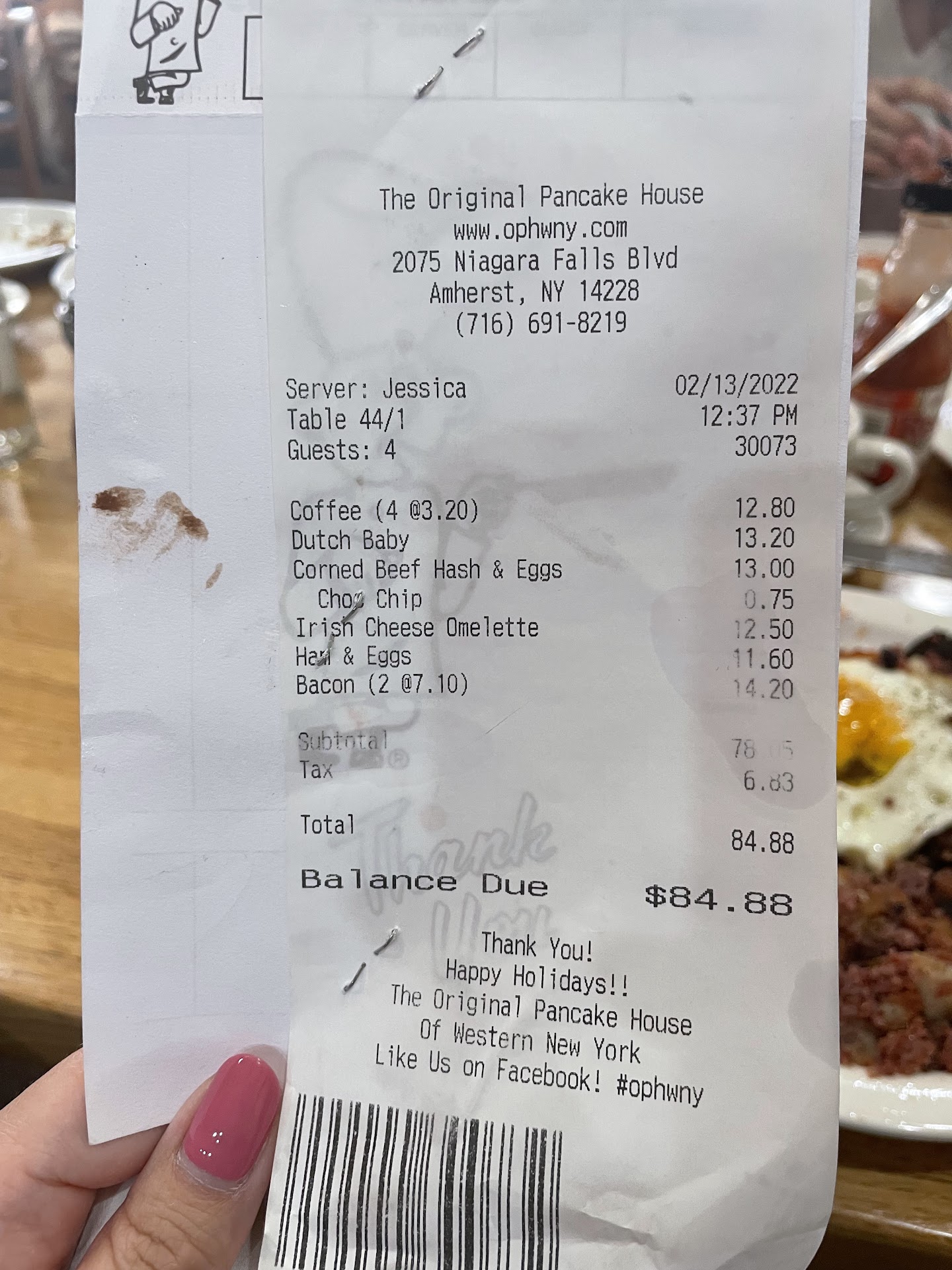 Ā Ā Ā Read moreMy wife and I have been going to the Original Pancake House for many years. It used to be our favorite Breakfast/Brunch location but that has changed as the food quality and service has gone the wrong direction. Every once and a while we will still stop there as my wife will crave a Dutch Baby which was the case this past weekend. They were moderately busy at the time we were there but nothing compared to how I have seen it in the past. We were promptly sat and after about tens minutes our server came by to get our drink order, at that point we were ready to order food as well in which we did. The Dutch Baby takes about 20mins which is fine, eventually they brought our food which included pancakes. Our server never brought us syrup and when we flagged them down we also mentioned that the side of toast we ordered never arrived. They promptly brought the syrup for the pancakes that were now cold and the toast came out a few minutes later. I struggle to use the word toast as it was just warm bread since they obviously forgot to put it into the order so they rushed it. All in all my wife's meal was fine, mine on the other hand consisted of failure after failure by the staff that resulted in cold food and a well below average dining experience. If that isn't bad enough, when it's time to pay with a credit or debit card, they bring the scanner right to the table and wait for you to complete the transaction almost forcing you to give a good tip despite the terrible service. There standard tips start at 20% on the screen, if you want to go less you have to select custom and go from there. It's intimidating, and honestly we are not talking about much more service than you receive at a fast food drive thru. Unfortunately we have decided that this was our last experience at the Original Pancake House, I would rather pay twice or even three times as much for a better overall experience. I do hope that we have been the exception and not the rule but seeing how these types of things have happened time and time...