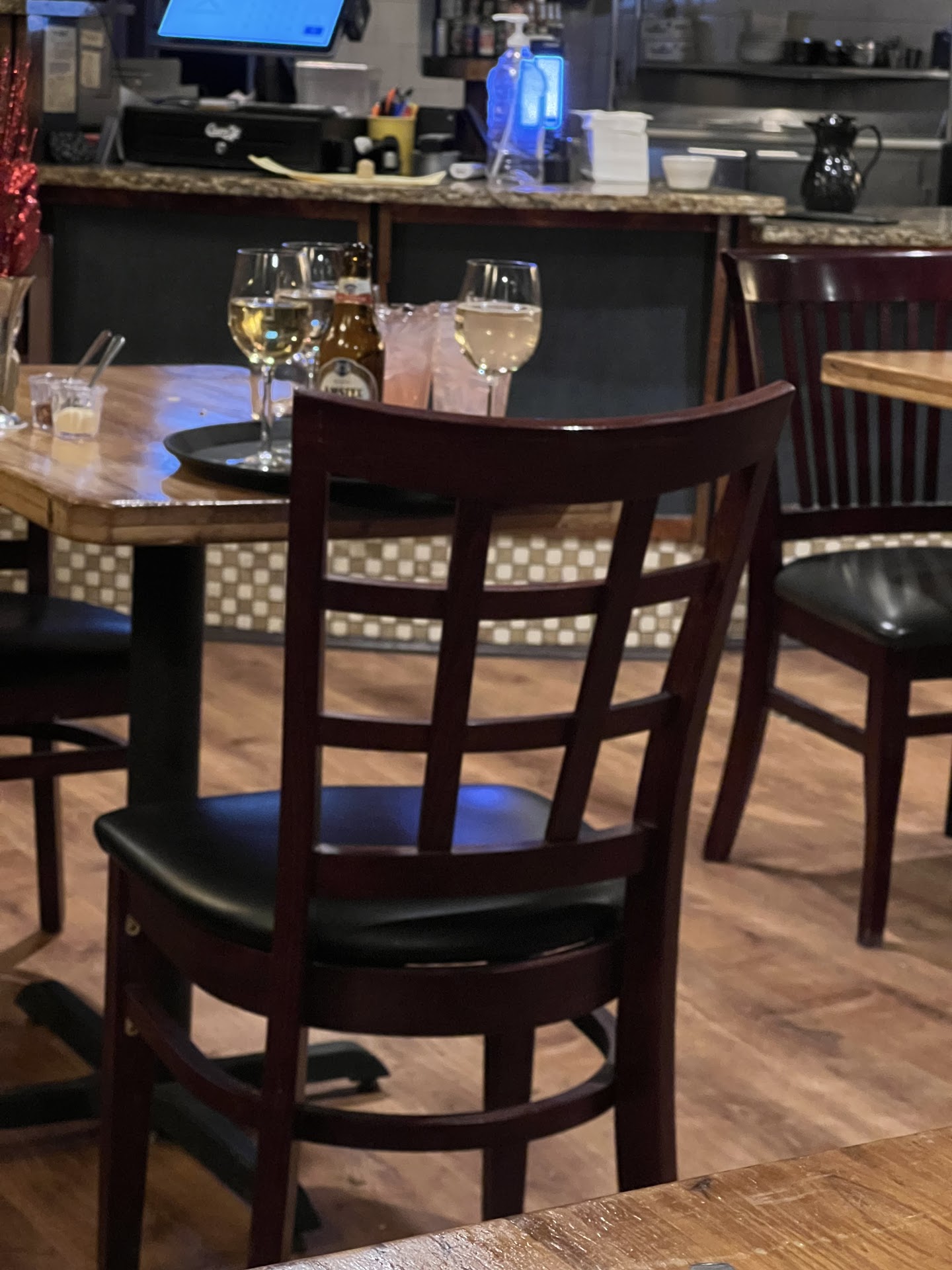Read moreIf I could rate this restaurant no stars at all I would. My friends and I made reservations for Valentine’s day (well in advance) for 7:45. I checked in at 7:40 and then we waited until 8:30 to be seated. We were slightly aggravated but still gave them the benefit of the doubt seeing as they were busy. By the time it was 9:20 we had only gotten our drinks. We had waited almost two hours to be seated, place our order and only get drinks. Our server was one of the owners, she was nice but the other owner who I’m assuming is her husband was far from understanding and completely rude. When they brought our appetizers out right as we were getting up to leave, he asked us what the problem was to which we explained we’d been here for almost two hours with nothing but our drinks and we wanted to go. He made a comment that we should notice that they’re busy to which I told him it isn’t justifiable and he told us to get up and leave so we did. Other customers in our section were also as disappointed with their experience. We asked a couple who was there well before us if they had gotten their food and they said no. The other couple beside us applauded us for leaving because the service was just absurd. They also mistreat their staff—I noticed how they talk to one another while I was waiting at the host stand and it was unbelievable. I’ve worked in the serving industry and I couldn’t imagine working under management like that let alone being the owner and thinking our experience was okay in the slightest as well as the way he spoke to us. The picture was our server placing our drinks down at the table beside us and then leaving them there so she could go tend to another table. I’ve been to Trattoria down town and had a great experience but this place is beyond poorly managed and would never recommend to anyone. First and last time I’ll go there and I didn’t even eat anything. What a joke