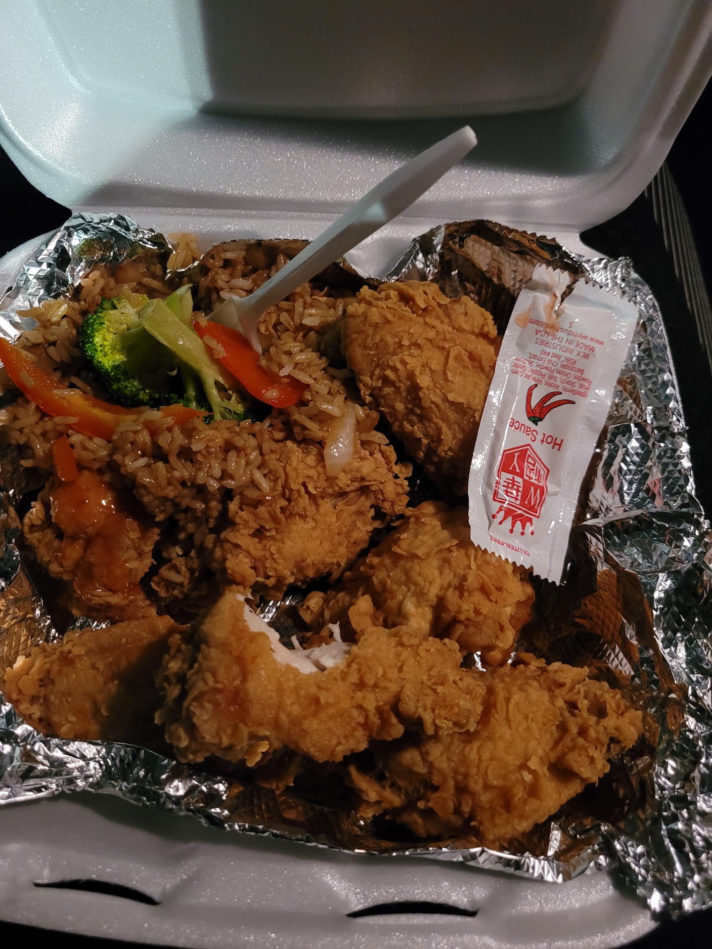 I did request sesame chicken with white rice, and though it was the middle of the night with all other provisions closed, I held hope that my meal would bring solace. Yet, by the second hour and fiftieth minute of the night, my order didn't arrive after a protracted wait. To my dismay, the meal was incomplete: I received only the sesame chicken and white rice, each contained separately, and no plate was provided for my ease.