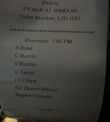 Read moreStopped in for dinner on a Sunday night, it wasn't busy but the place was a mess. I ordered a carnitas burrito, had to wait while they reheated the queso and was given a dribble of it for my $1.55. Sat down with my wife and son to eat, took one bite of my burrito, and it was frigid. I figured it was the salsa and sour cream, but I dug out a piece of carnitas and that was tepid as well, definitely in the 40°-140° danger zone. Went up to the counter to say something and the cashier looked at me blankly when I told him it was cold, called over another person who looked incredulous that I dare say my burrito was cold, a third person came over(shift manager I assume) she offered to remake it, which she did, incorrectly. It looked like it was wrapped by a drunk toddler and somehow the foil was on wrong? It was an adventure to eat this monstrosity without incident. I wish I could say that after all that I was rewarded with a delicious burrito, but I can't because it was terrible. Spoke with the shift leader again as we were leaving and she informed me they were trying to dial in the temps on the burrito station, and raised the temp on the cold side from 9°f to 12°f. Which explains the ice cold salsa and sour cream. She also mentioned that the GM was off this weekend, at a brand new store not even open a week. That is an absolute joke, only a terrible GM takes an opening weekend off and leaves a new team to figure it out on their own. Hopefully no one gets e coli or listeria before they...