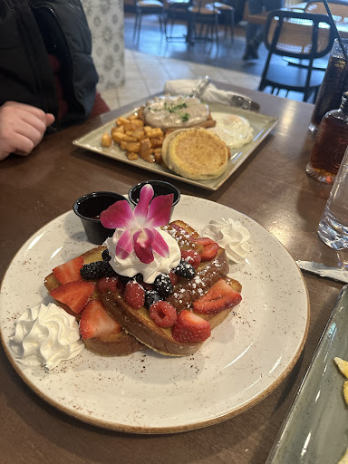 We absolutely loved our visit to Era Pancake & Café in Woodruff! I called before our visit to inquire if breakfast was served all day, the hostess giggled at my excited gleeful squeal before telling me she'd see us soon. We were so excited to have breakfast for dinner! The Crème Brûlée French Toast alone is worth the drive—rich, caramelized, and downright dreamy. I couldn’t resist pairing it with a mimosa at 6:30 at night (because why not?), and it was the perfect touch. Fresh squeezed. Yummmm.
