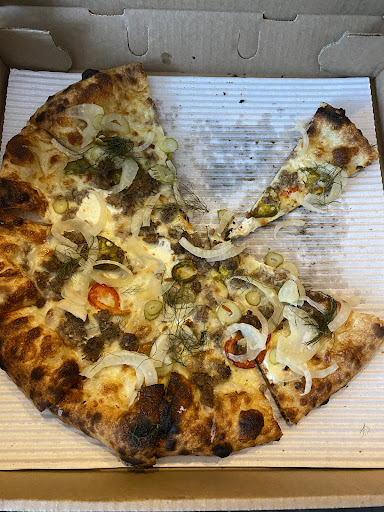 Read moreWhat a solid offering and the best pizza I've had in recent memory. The pizza is somewhere between nepo and ny style. Really a surprisingly light crust and very crispy. Very much it's own style which is refreshing. Pizza is cooked in a standard deck oven which is a little unexpected but does not take away from the final offering. Both pies I had were cooked identically which is something that the deck oven helps with. The calabrian crunch was great. I wasn't a fan of having to place the order at the counter and self serve water, however once we we're eating a waitress did come around and give us more water which was nice. Seems like the service flow is evolving and should get better with time. Jay also brought the pizza to us...