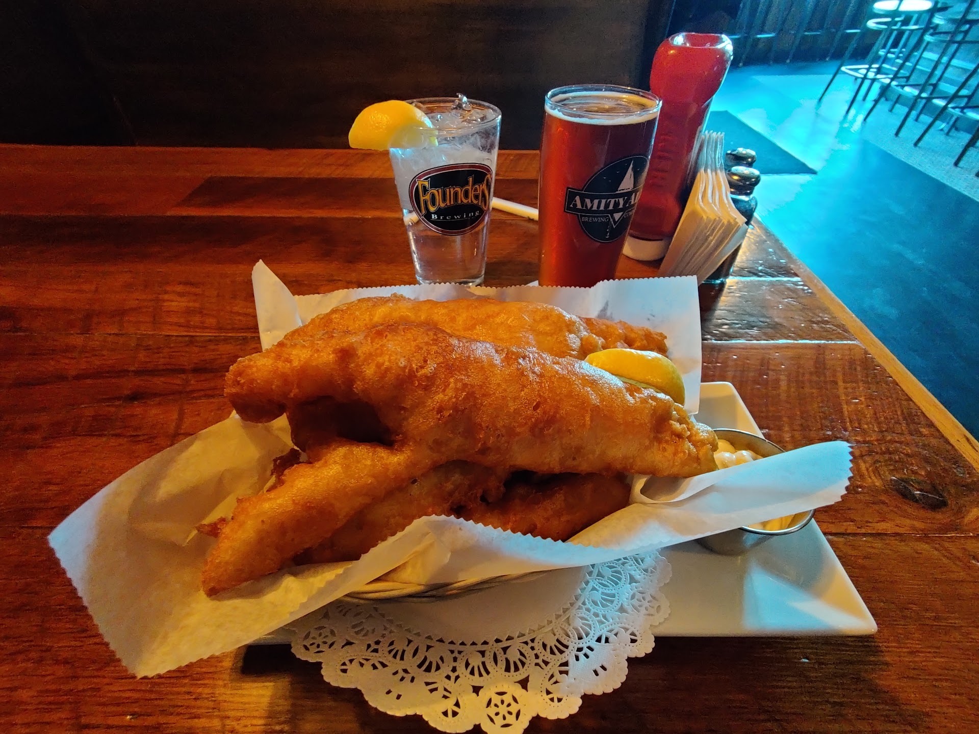 Read moreI am a firm believer in supporting local businesses. We have been here multiple times over the years. This is not the only bad experience I have had, but the lack of caring and attitude we received from the manager tonight has completely turned me off. First the waitress got my drink order wrong, I didn't say anything figured OK people make mistakes. Ordered another drink and this time the drink was correct. We ordered a few appetizers which were just OK. We went ahead and ordered entrees. One of them was incorrect, we let them know and asked for it to be corrected. I then asked for a "to go" order for one of the specials. I was told on the way back from the table that I wasn't able to get the special as a "to go" order. I explained that the rest of the table was staying I was just going to run it to my husband who is also a local business owner as he was not able to join us. Manager was not interested at all. One of my friends asked the waitress to have the manager come over so we could speak to him. He acted like he was doing us a favor. We mentioned that it wasn't noted anywhere on the menu that "to go" was not an option. He told us they didn't have to post it anywhere since he was telling us now and that's just the way it is. WOW!! We ask for the bill and we see that in addition to the long wait for the food, the 2 mistakes on our order and the rudeness of the manager we were charged a dollar for every sauce we got, which I don't have an issue with but the server certainly should have said there was a charge. Unbelievable the way we were treated. It's a shame I will not be coming back to Amity Ales considering I understand how important it is to shop and support...