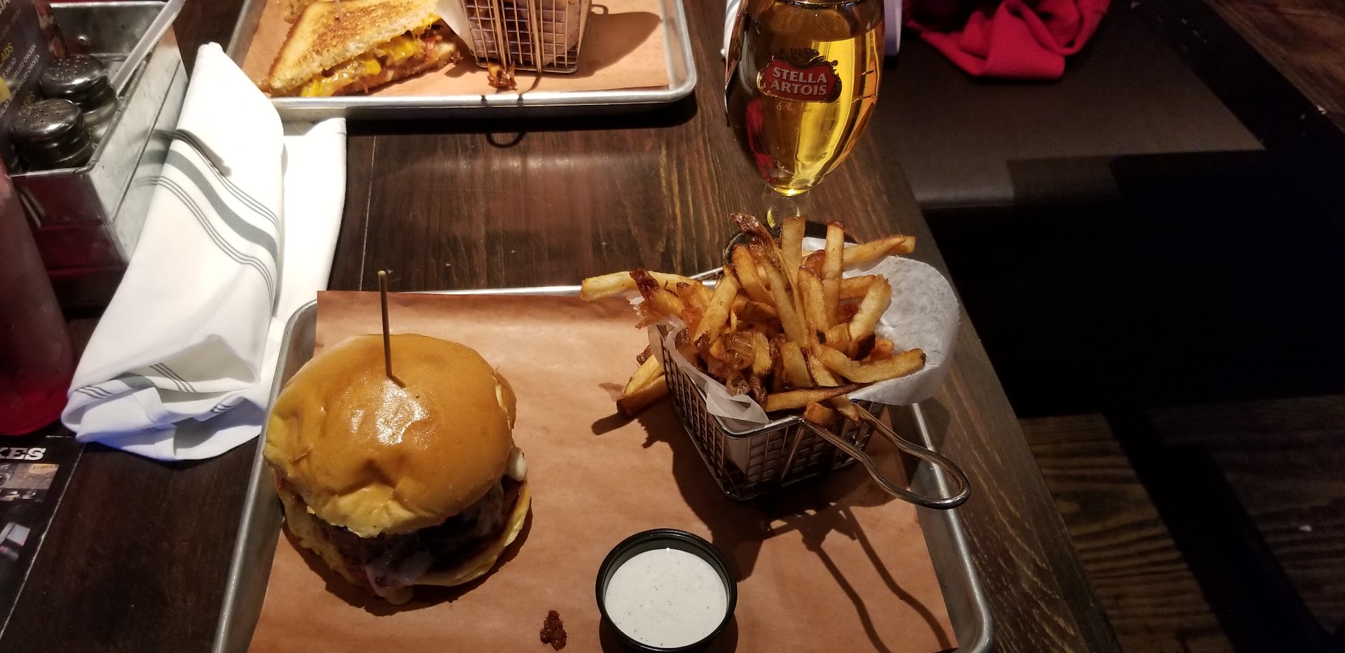We called 2 times before we arrived because we had a bigger group just to see what the wait was like since they donāt take reservations. We get there and they tell us 30 minutes so we are like okay thatās fine and Iāve been in the food business before so I understand it might be longer. We wait and know that thereās another party a head of us okay again thatās fine. An hour passes and two tables clear up, they can fit us at one of them. But then they donāt so I confront the manager and he tells me he canāt put us there and I explain the situation but heās not budging and so yes I raise my voice at him because Iām frustrated and so I walk away and tell my family whatās up, so then someone else in my group walks over and he says āoh were you the one yelling at me?ā Like dude how can you not remember someone wearing a bright blue jacket versus not and me and my friend do not even look alike. Also is that how you talk to all your guests?? Anyways because my friend talked to the manager, he was able to magically get us a spot wow will you look at that. We sit down, he gives us poutine for free okay cool, but then I hear from two of my friends that the utensils have food on them still. Our waitress, Jess, did great she was very attentive. The food was decent. My friend ordered a medium rare burger it came out well done bruh but again Jess was right on it and fixed it immediately. She really saved us tonight or else this place would have gotten like zero stars. I have been a hostess before so again I get the stress when itās really busy I really do but why are the hostesses on their phones even when itās calmed down inside and giving side eye at their guests? I donāt care how tough a customer may be, you keep your head up and smile and deal with it because news flash thatās life. Overall, you can find the same type of food at Burgerology and literally any other burger place. Iād recommend coming here when itās not so busy and when they care about...