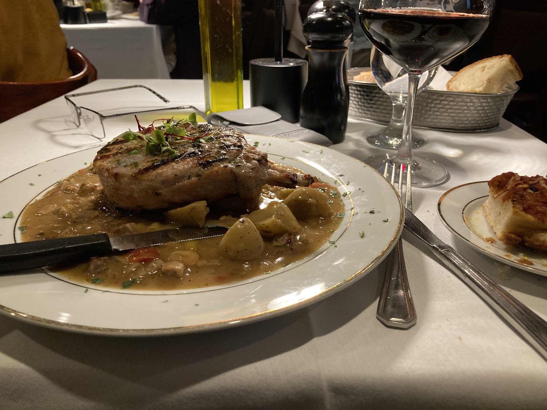 Read moreWow ,that's what I say ..what a nice place to dine ..It a definite you should give it a try ..We are there on a Wednesday night Delicious..so of course we got a drinks at the bar bartender was very friendly then we sat at our table for calamari very good then salads came with meal fresh !!! main courses 2 of us got. short ribs with mashed cauliflower nd carrots in au jue sauce OMG OHH SOO GOOD.a big dish . lunch tomorrow .!!!.My hubby got chicken franchese 3 nice pieces nd side of pasta ..you can have it with the franchese sauce or red sauce..the chicken was tasty nd light and tender ..Then the branzino with spinach nd tomato's over a bed of thin pasta in a wine sauce fantastic..we got coffee ,espresso nd a cappuccino .and a tartuffo to share it was huge nd very nice ..prices are reasonable ,no mask required how nice quaint this place was clean they wiped down the entire restaurant as we were finishing up .The staff are very kind, helpful nd pleasant . place call for a reservation. I think it wise or just walk in and sit at bar he Ave a nice drink while you wait ...it's a...