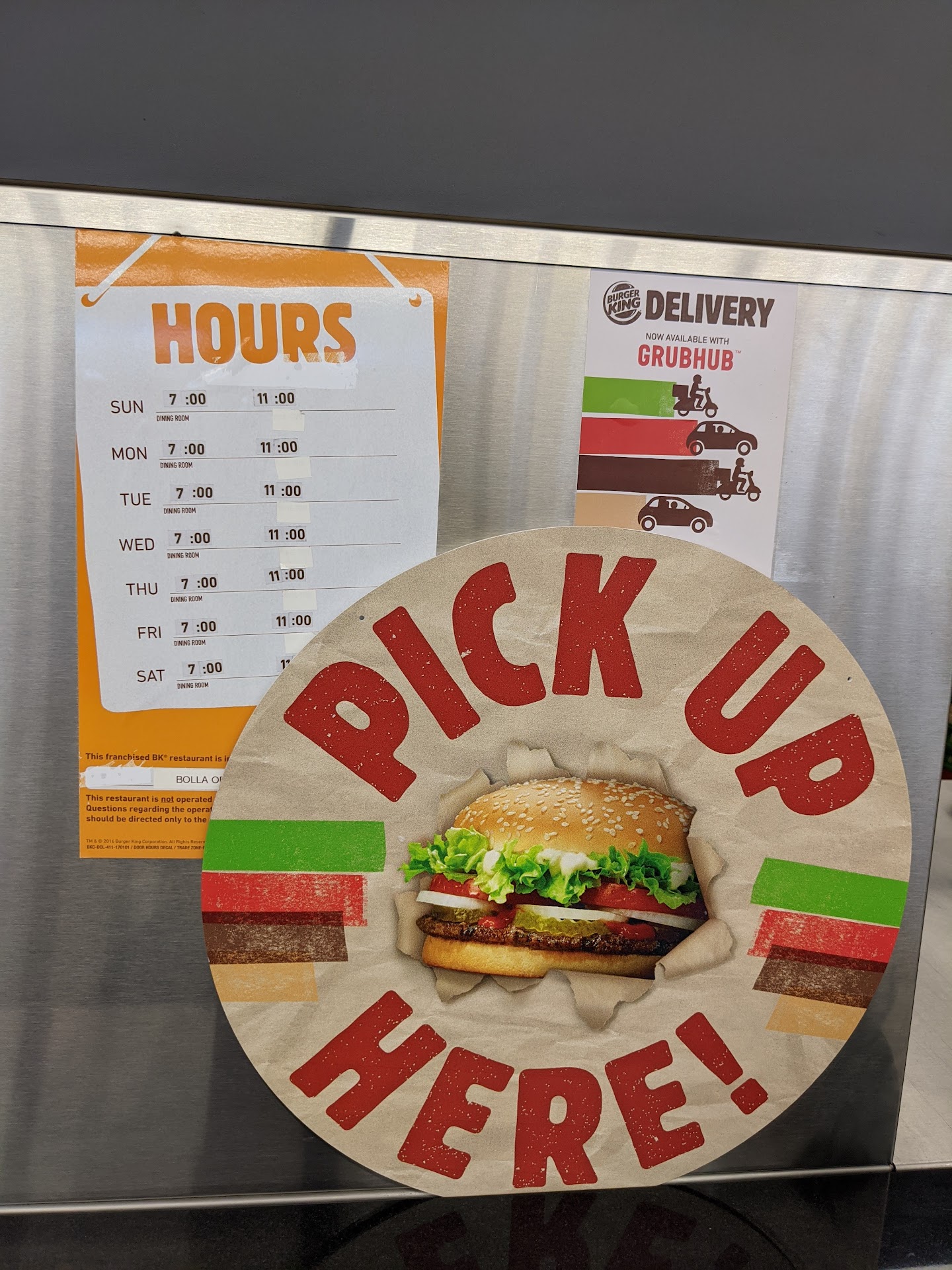 Read moreKiosk never works, then you order from Spanish not speaking English workers. Tv screen on pumps advertises 2 whopper juniors for $5. But when u get to BK they charge 2 for $6. Then u get sent to gas station to pay, they give u receipt that says "faxed". Then when u go get food lady won't give u until you hand in your receipt. And of course when you go on website to complain they require a receipt which you are not...