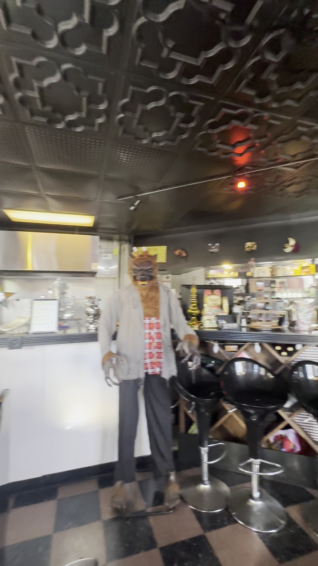 Read moreFirst of all, this place is super tiny. You feel like you are stepping into a tiny deli in Queens that they squeezed a few tables into and tried to call a restaurant. It's so bad that the staff was constantly sending people outside, telling them that it was a fire hazard for them to wait to be seated inside the establishment. Second, the decor is very dark. Skeleton tablecloths, earie masks on the wall. A sign that says "be nice or leave." All very odd choices, but I understand some people might be into this, so okay. The prices do not reflect the quality of food or the experience. Most of the options seem to be overpriced. My food was okay tasting. I was not disgusted, but didnt have any desire to finish my plate. Honestly, I would have preferred Ihop. They have a drink called an "Apple Bomb" for $4. It's literally just a small round bottle of apple juice. Nothing special, not worth the cost. The last thing that concerned myself and my friends is that they charge you a fee for paying with a card rather than cash. This has been deemed illegal by the supreme court, but we just wanted to get out of the place at that point, so we let it go. Overall, it was not a good experience and we will not...