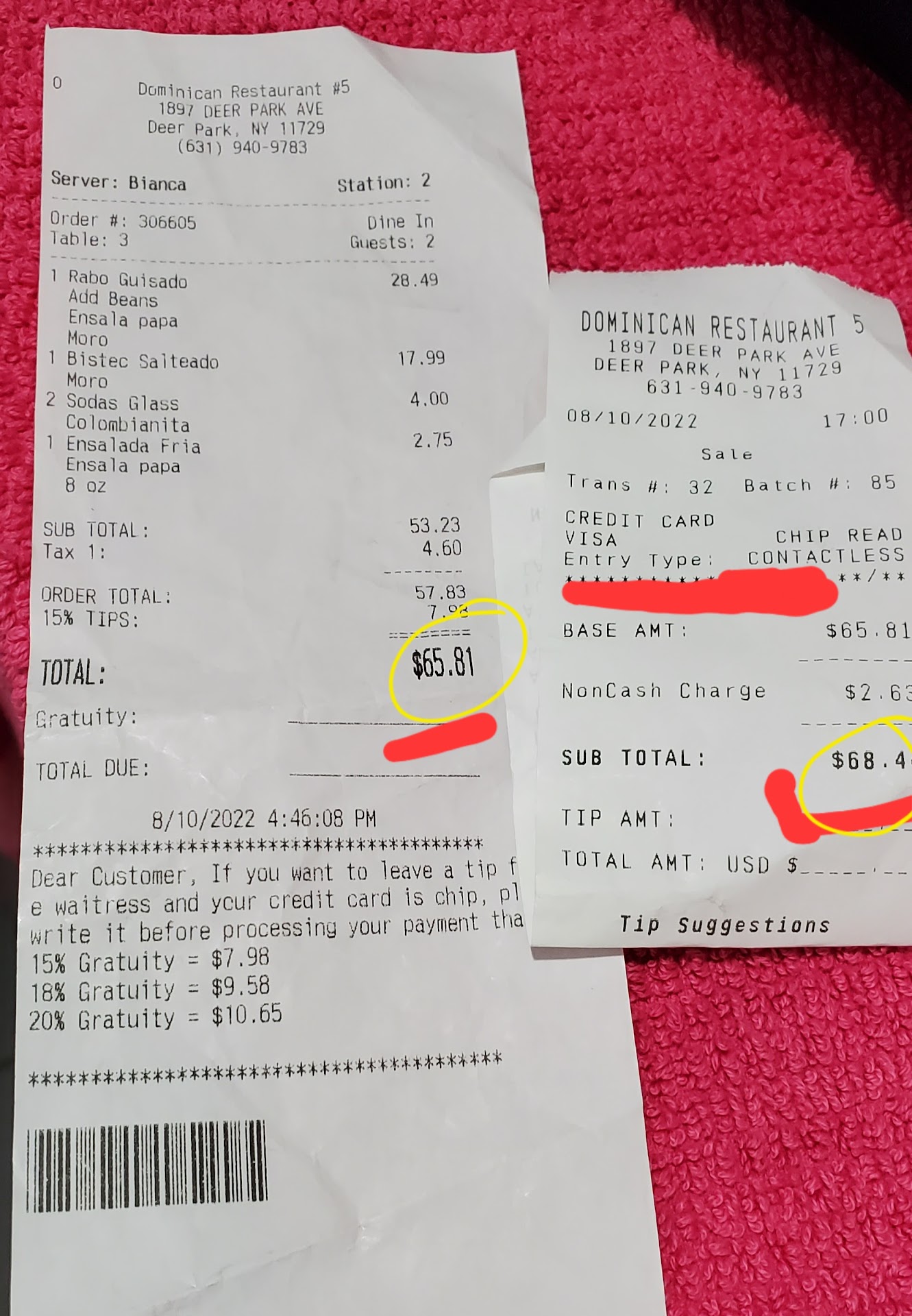 This restaurant is a fantastic find, earning a solid 5 stars from me. From the moment I walked in, Geraldo and Lily greeted me with such warmth and professionalism that I immediately felt welcome. Their friendly and polite service was a highlight of the experience. The restaurant itself is impeccably clean, and the food not only tastes great but looks amazing too. Every dish that came out of the kitchen was a feast for the eyes. The service was consistently excellent throughout my meal. While it might be a little on the pricey side, the quality of the food, the cleanliness of the establishment, and the outstanding customer service from staff like Geraldo and Lily make it well worth the cost. I highly recommend this restaurant to anyone looking for delicious Dominican cuisine in a welcoming and clean environment. I will...