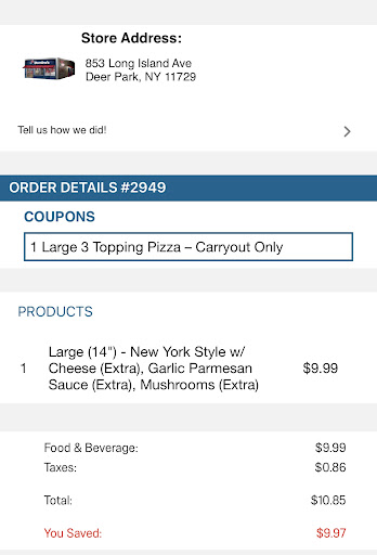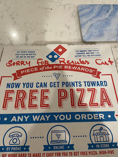 Read moreOverall your average Domino’s Pizza Place. Nothing special about this one in particular. Service is fine and wait times are acceptable, but just wish they had the crushed red pepper flakes. They are a bit cheap/stingy with their supplies, like plates, napkins, etc. and sometimes just say they don’t have any.