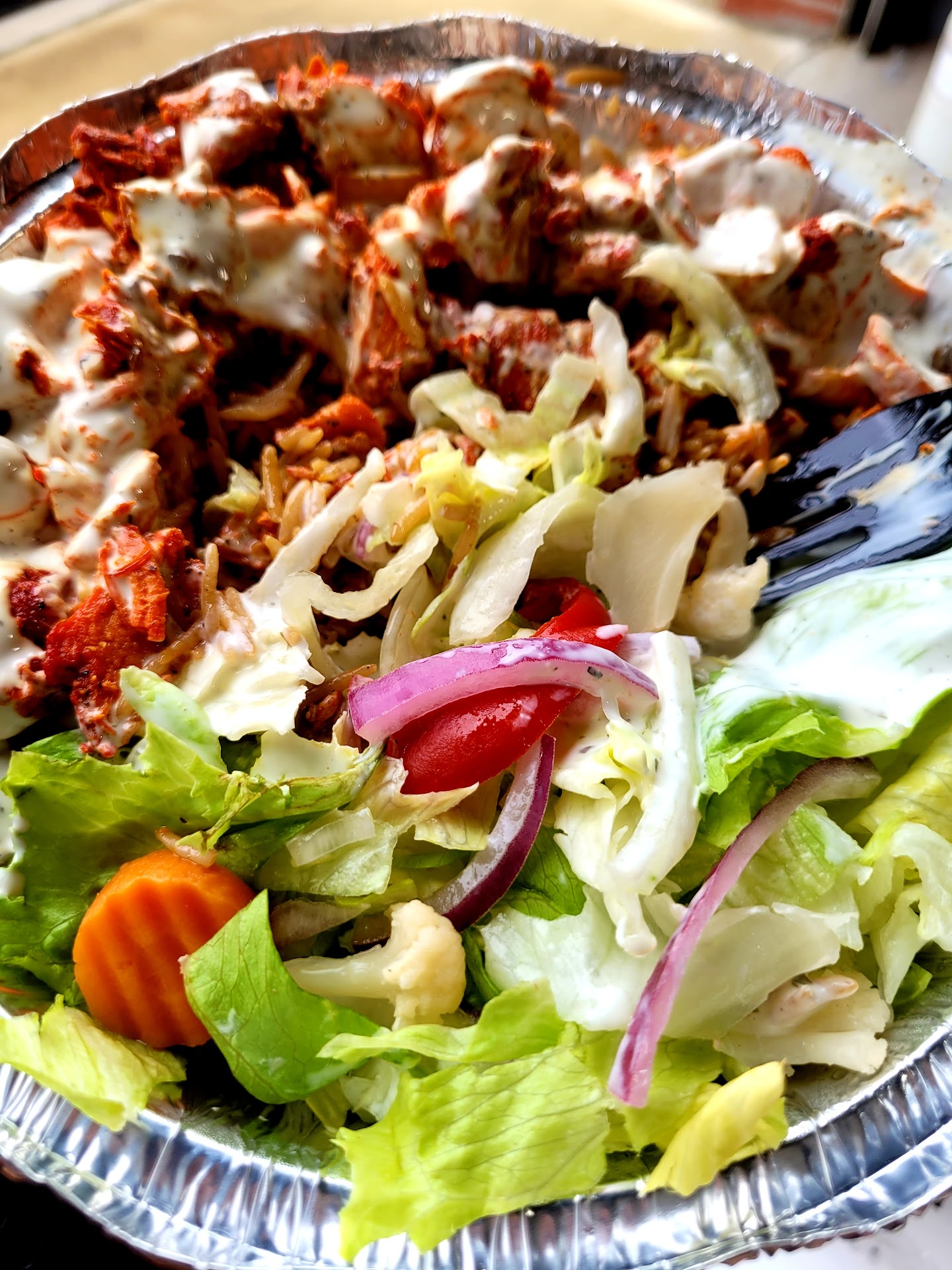 Read moreMeh. Have had better food and service at other local halal places. Decided to try this place. Person on the phone who took the order was being a jerk to my husband because he claimed I ordered kebabs when I ordered the mix platter. (I asked him if they had it since the menu wasn't very clear online...it's 2019, there no reason you shouldn't have an updated online menu. He said they did and I said great I'll take two orders.) Asked for one platter to not have rice and just salad, got a ton of rice and a tiny row of just lettuce. (To be fair, the gentlemen on the phone and who spoke to my husband did tell the cook no rice, so that's on the cook. And based on another review, seems like this is the trend here.) I'm no chef, but a few shreds of lettuce is not a salad. Other places at least put some tomatoes and onions.