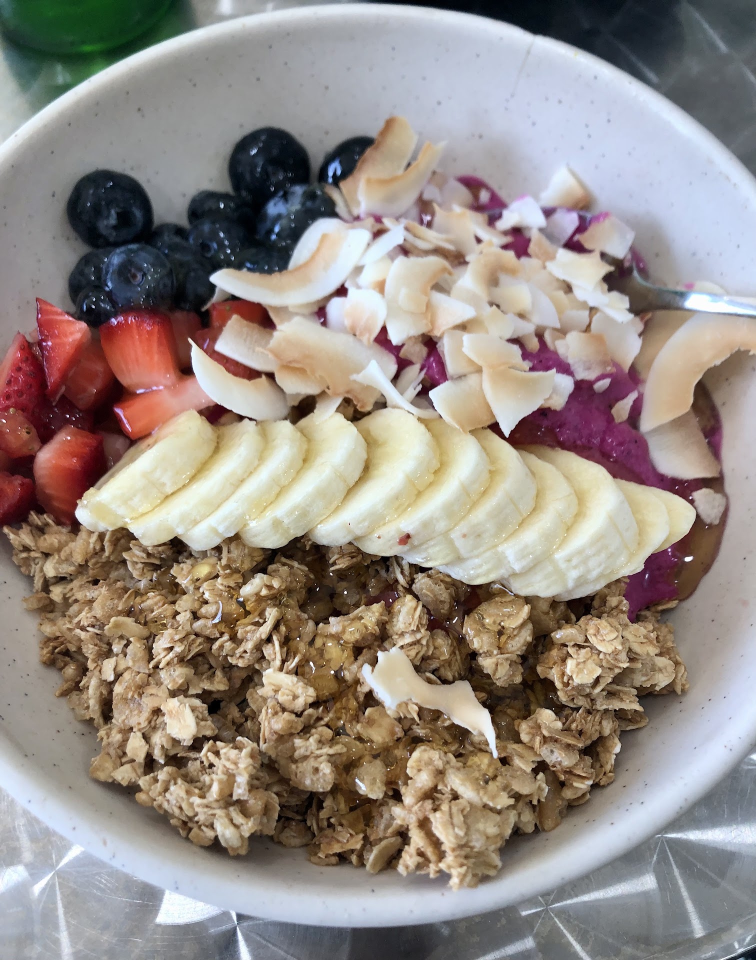 This was the first time I tried a bowl here. I had the purple one. It was really good! The portions are big and I loved the coconut chips. Everything tasted very fresh/natural. It smelled really good in the store too.The only thing I wasnāt crazy about was the granola. It was a little too crunchy and did not have enough variety to it in my opinion. I like when granola has something else mixed into it such as nuts, seeds or dried fruit. All the staff seemed to be enjoying their job and I liked the atmosphere. I also tried a wellness shot for the first time because Iād never had anything like that before. It was interesting! Iāll...