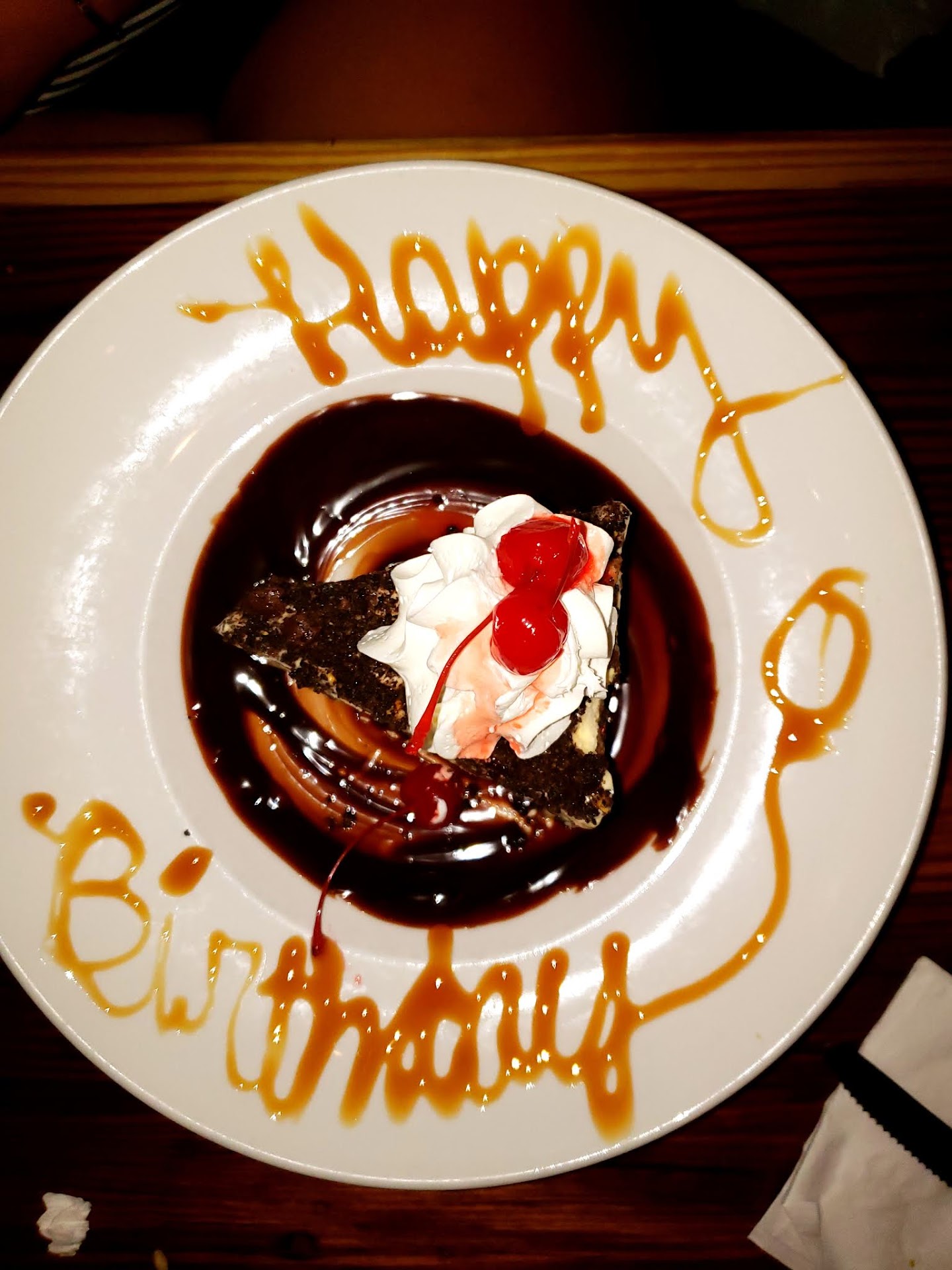 Read moreI have been to this location before but only for drinks. Last night our party of 4 came for dinner. It looked busy but we still managed a front row spot. We got in and they never gave us a time frame just a piece of paper with the number seven. We stood around then i looked an seen an electrical board with the numbers 20 21 ... blinking. I looked down and we had 7. I thought maybe this a mistake and it should be 27? Walked over to host and she said the wait is 1hr and 7 is correct... My grouop proceed to the waiting area to sit and noticed after 40 minutes this board sais 5,6... Meanwhile there had been a steady stream of guests leaving during this 40 minute wait..large parties of people leaving. eventually she came out calling #10 and we stood up, fed up and they claimed to have called the number. They did not. After seating we had a very NICE waitress. prompt with our drinks and food. I got the Fish Tacos, not a fan. The Southwestern Egg rolls were delish however they put LIME in the ranch. like a pound of LIME. strange... Our friend got the free birthday dessert and honestly it made forget that over 1hr wait. Plus the waitress writing HAPPY BIRTHDAY in caramel syrup was creative and over the top. If your looking for quick bite, go elsewhere. The food was non too memorable. The dessert was delish buried treasure or something it was called....