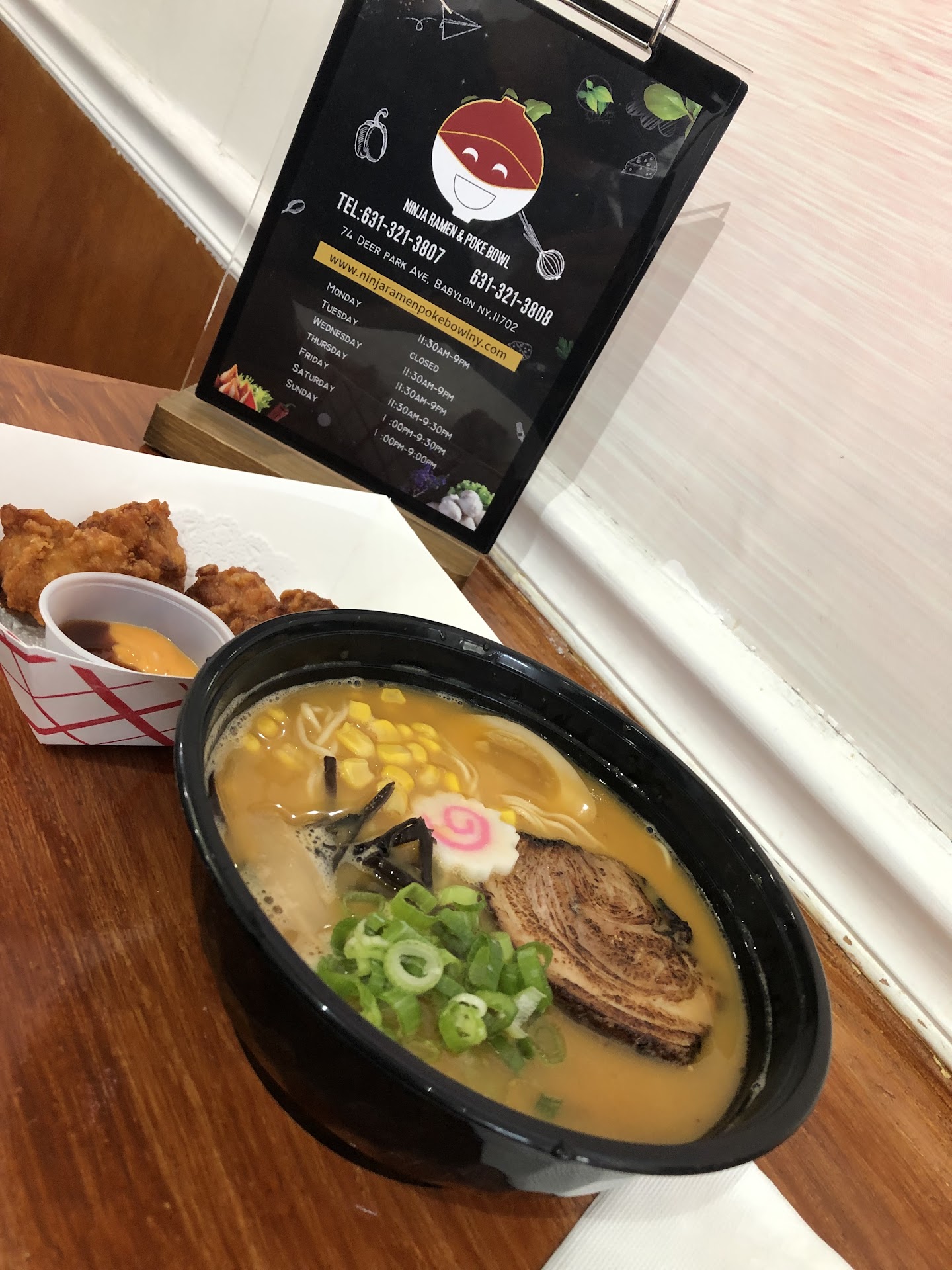Overall the soup base and pork is good.. the ramen itself I can tell it's not the fresh kind you get in those crazy ramen spots in NYC. But this is Babylon.. you can't expect anything too crazy right?
