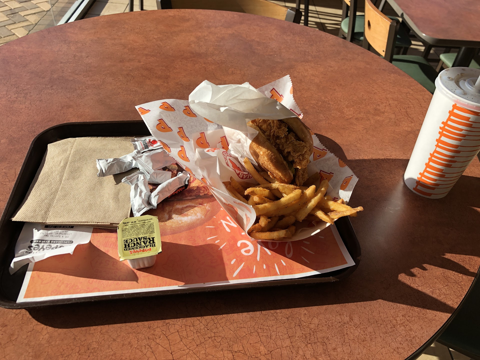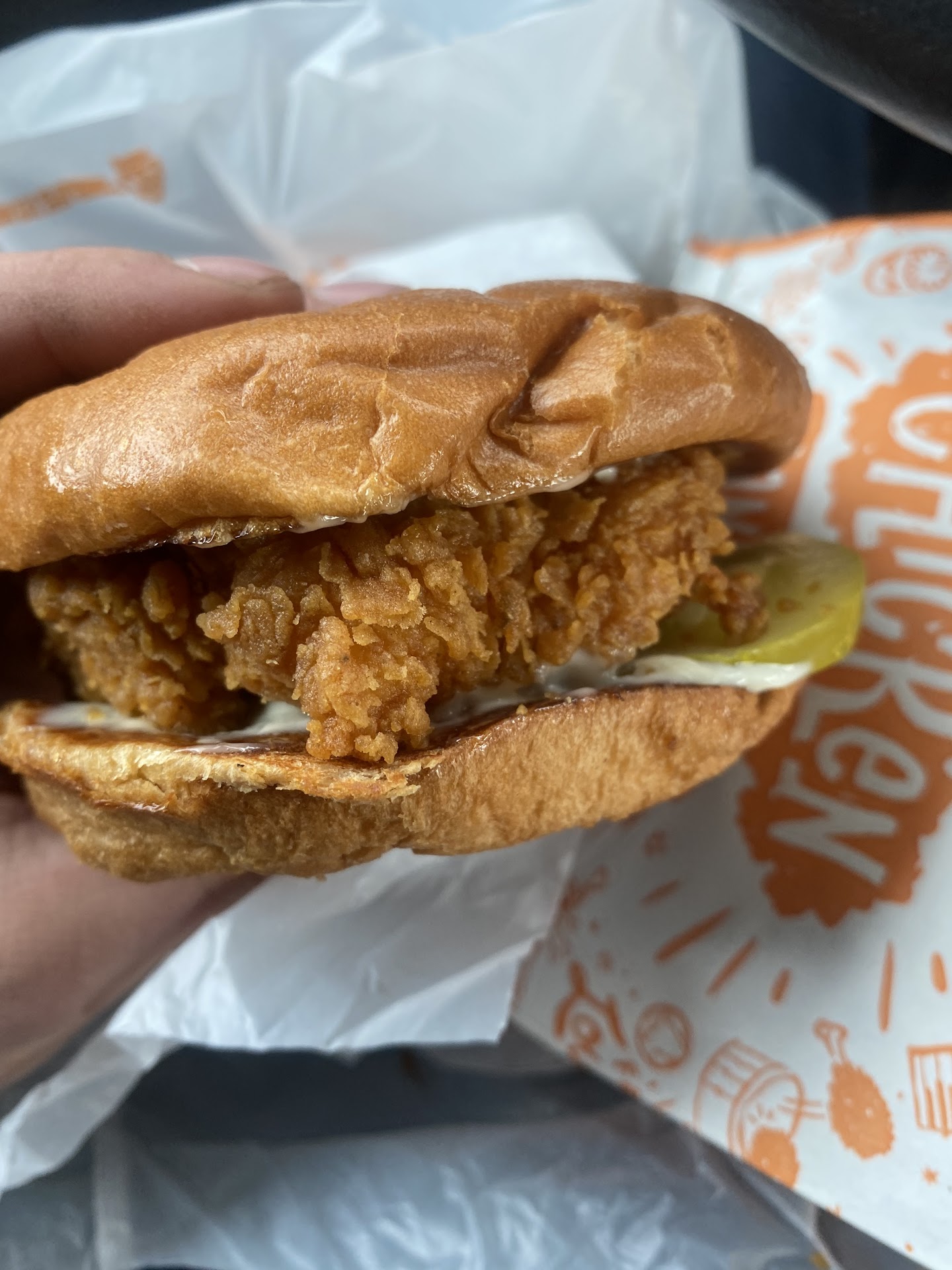 Read moreI have always been a fan of Popeyes and at one point in time was absolutely addicted to their shrimp po-boy sandwiches. But my sister got me completely HOOKED on their chicken sandwiches. The sandwiches you can get with spicy sauce or regular(both are good but I like the regular a bit better). It's quite simple but so delicious. Its not like other fast food chicken sandwiches that are small, and have more breading than chicken(which is usually dry). The sandwich is HUGE and the chicken is SO moist and the sauce is so freaking good. It comes with pickles which I like to take off a eat first and then I also add some BBQ sauce to the sandwich and I am good to go(I absolutely LOVE bbq sauce that's why I add it but trust me the original or spicy sandwiches dont need anything extra they are perfect as is). Also you can't go wrong with their cajun fries which are usually gone before I even walk through my front door. Both my sister and I are also obsessed with their biscuits. Sometimes I will switch it up and get mashed potatoes instead of fries. Anyway definitely worth a trip to popeyes for their classic or spicy chicken sandwich; for 3.99 you can't go wrong(I'm telling you it's huge and filling on its own but I just cant resist those Cajun...