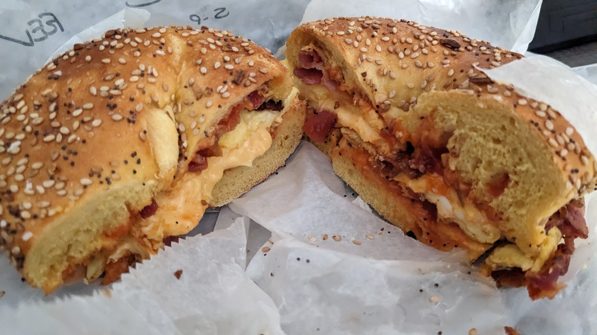 Read moreOutstanding breakfast sandwich! I asked for a fried easy, very crispy bacon sandwich and actually received a fried easy, generous portion of very crispy bacon. This rarely happens. Such things take longer so most places just give you regular bacon and overcook the eggs. It seems this place is prepared in advance for such requests and I received my order super quick. The everything bagel itself was well seeded (no salt or Caraway seeds FYI) with a light crisp crunch on the outside and soft, medium textured dough on the inside. And, the guy behind the counter was sure to tell me it came w a small coffee, which is another thing most places lack. I wish they were open later but I understand given the location as it caters mostly to the train travelers. A++ Edit: 11/12/17 Still amazing. There is salt on the everything bagel. Great service,...