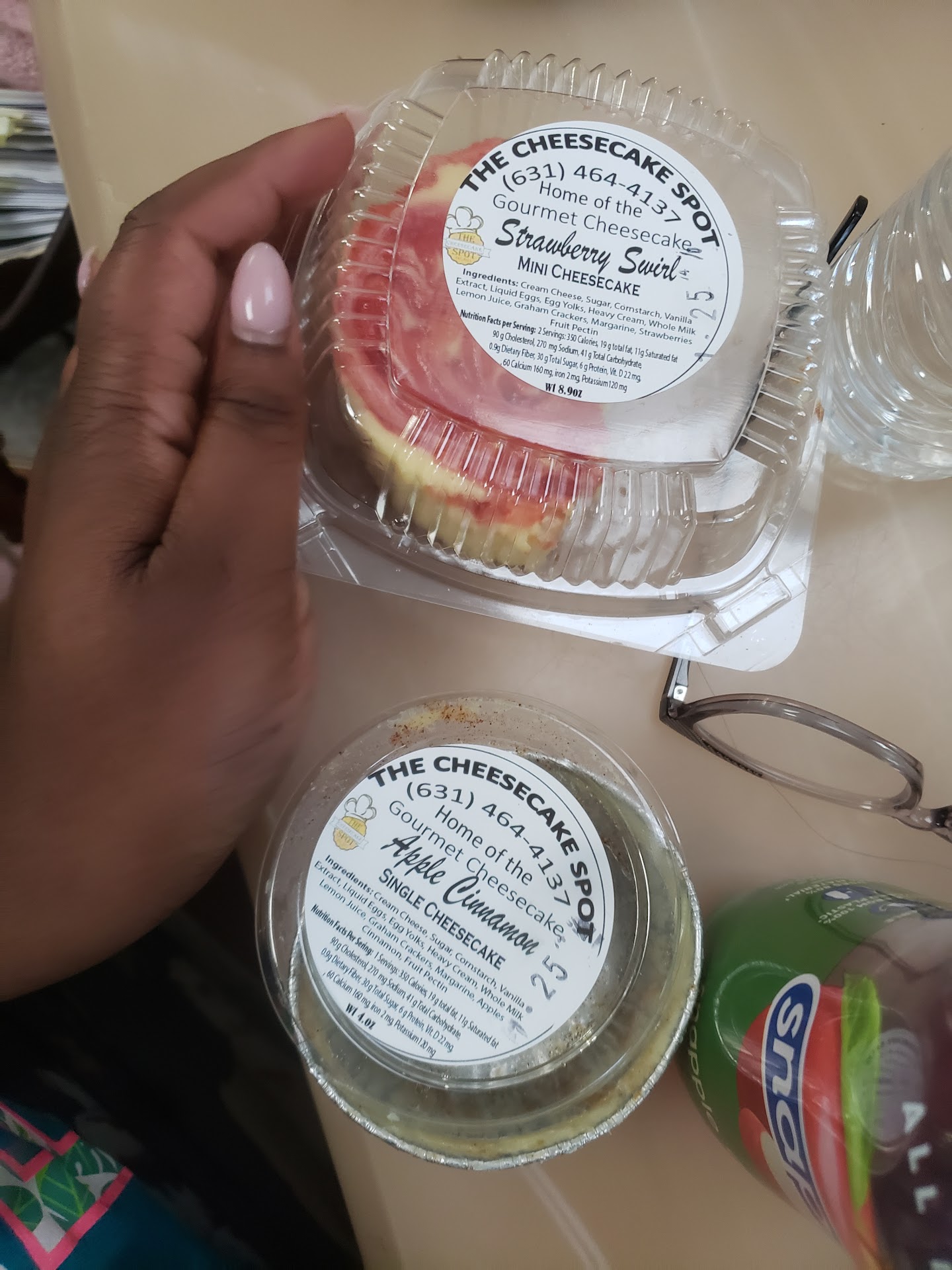 Today I bought my second and third cheesecake (plain / peach) from the kiosk at Roosevelt Field. I have also texted pictures to friends who I know are into cheesecake. Last time was blueberry and it was really very good . ( I get a mini cheesecake each time at almost eight bucks a pop). This cheesecake is really delicious because it is super light and fluffy and not overly sweet. According to what I have read online, there aren't enough black owned businesses. This is a black owned business if that is important to you to support. Personally, I like them because the cheesecake is outrageously good-- however if I can support a local business then that just makes it better. If you are curious, why not give them a try?