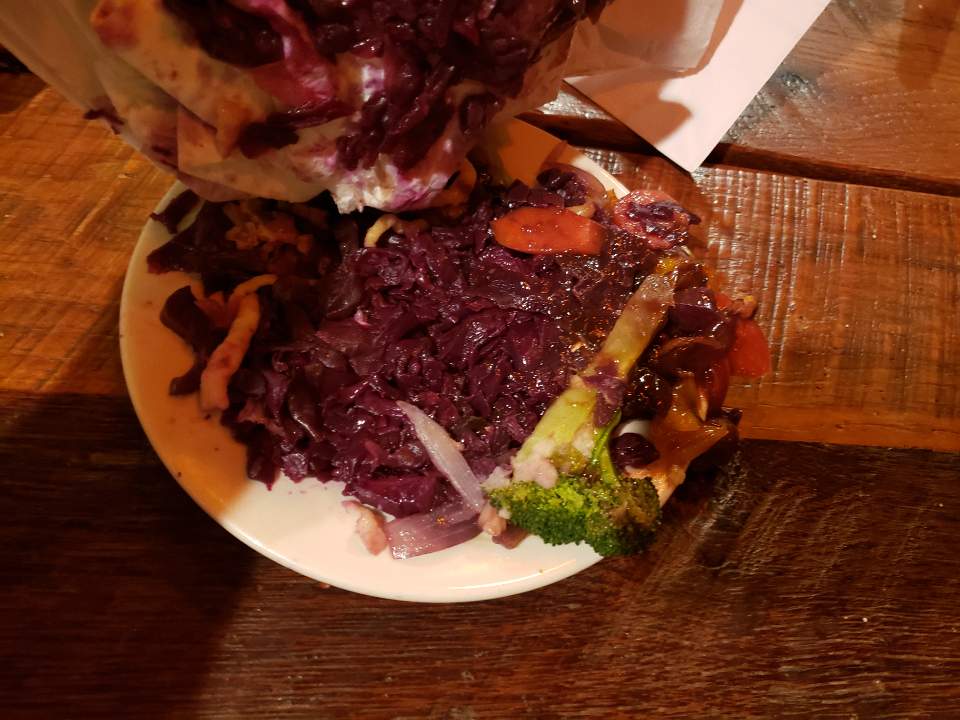 I ordered the Chicken Stroganoff. I asked the waitress if the gravy was made with meat. She told me they sprinkled bacon on top. There's no mention of bacon in the menu and there should be. I got it without the bacon. The gravy had a good gravy texture, but we pretty bland. The chicken was also overcooked and really bland. I had to add a bunch of salt and pepper. The veggies on the side were cooked nicely though.